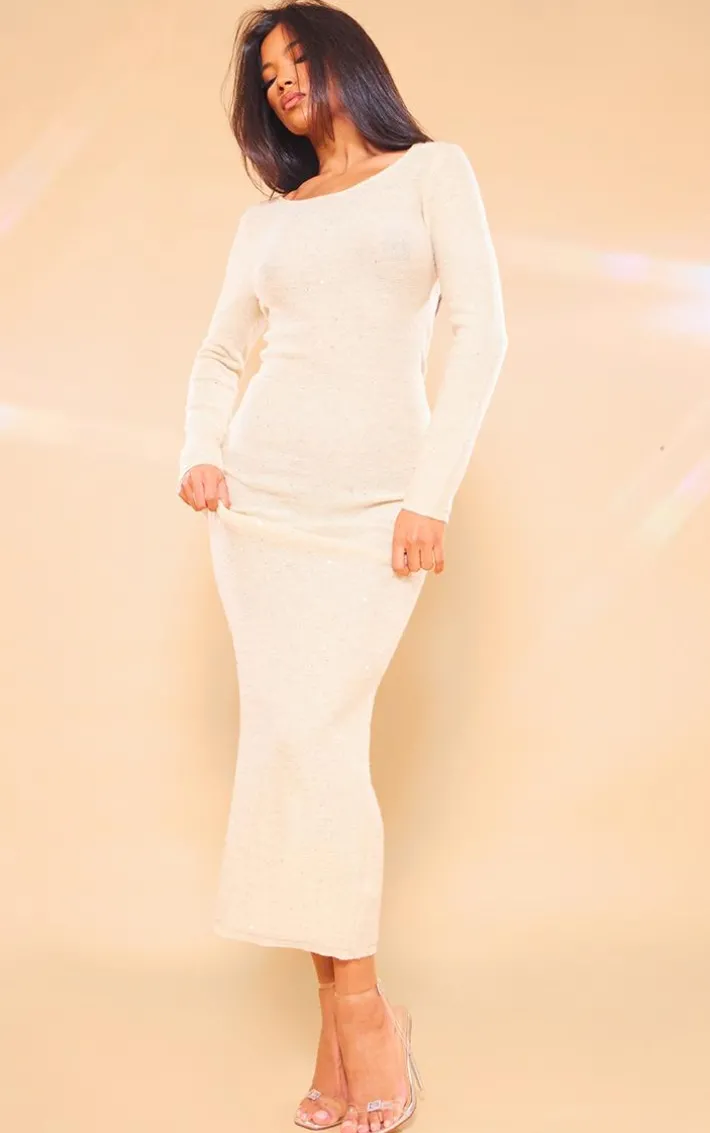 We’re in love with this gold sequin knitted lace back maxi dress for your weekend wardrobe. Whether you have plansor a date night with someone special, how could you say no to this maxi dress? With a gold sequin knitted material, a lace-up back detail and a figure-hugging fit, we’re obsessed. Style seamlessly with clear heels and gold accessories for a look that won’t go unnoticed.