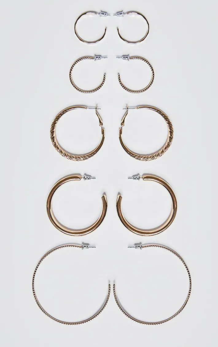 You can never have too many earrings and we are obsessing over this gold textured hoop earrings multipack. This set includes 5 pairs of gold textured hoop earrings in assorted sizes, what more could you want? Simple add the gold hoops to your outfit of the day for the perfect finishing touch.