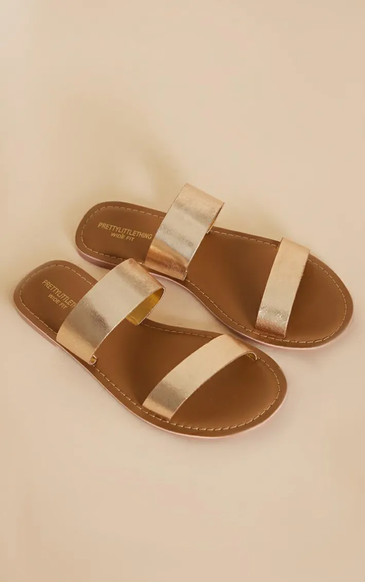 Take your vacay wardrobe to a whole new level with these gold wide fit leather strappy basic sandals. Made from a gold hue leather material with a strappy design and a buckle fastening, these wide fit sandals are perfect for adding a touch of luxe to your new season wardrobe. Style with your fave jeans and a bandeau top for a simple yet chic everyday look or why not pair with a show stopping summer dress for a look that will get you noticed.