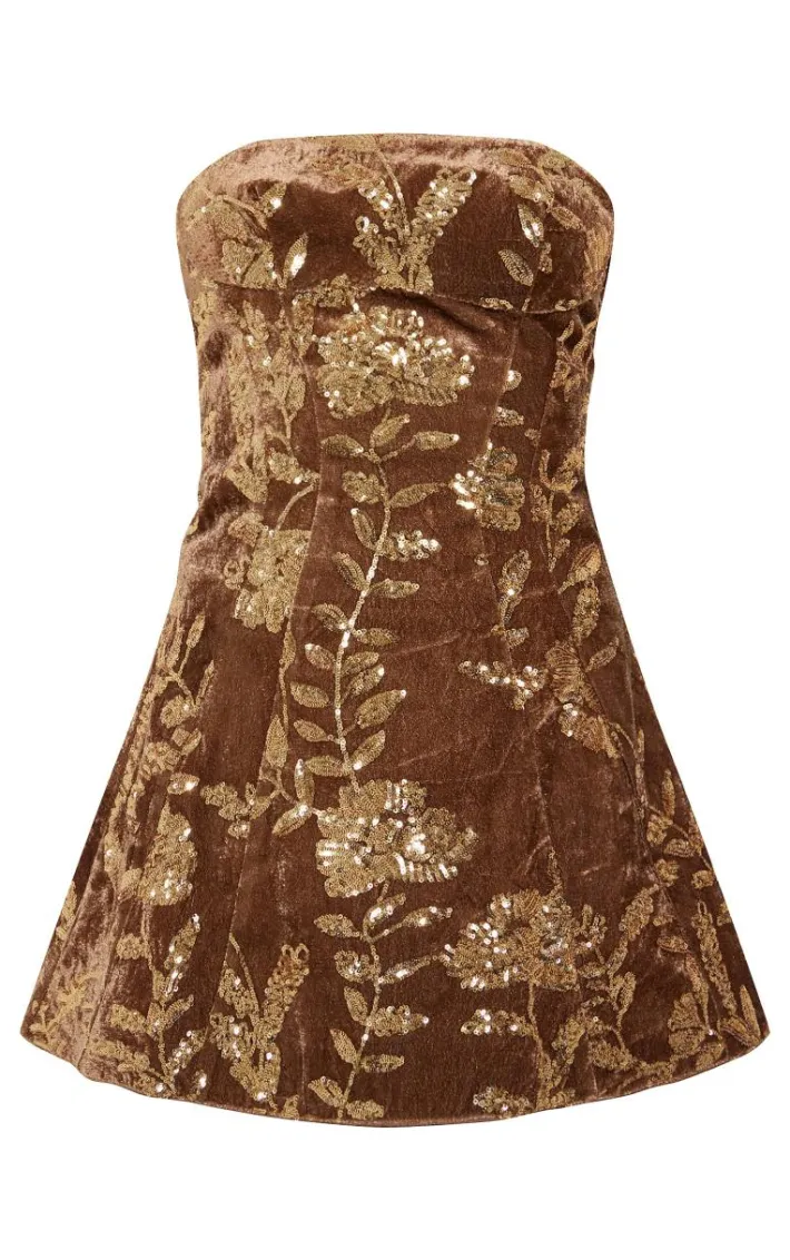Your evenings have never looked so elegant as in this golden olive velvet floral sequin A-line dress. Brought to you in a classic velvet fabric, with a floral sequin design and golden olive hue, we are obsessed. Let this A-line dress have its moment by styling with heels and chic jewelry.