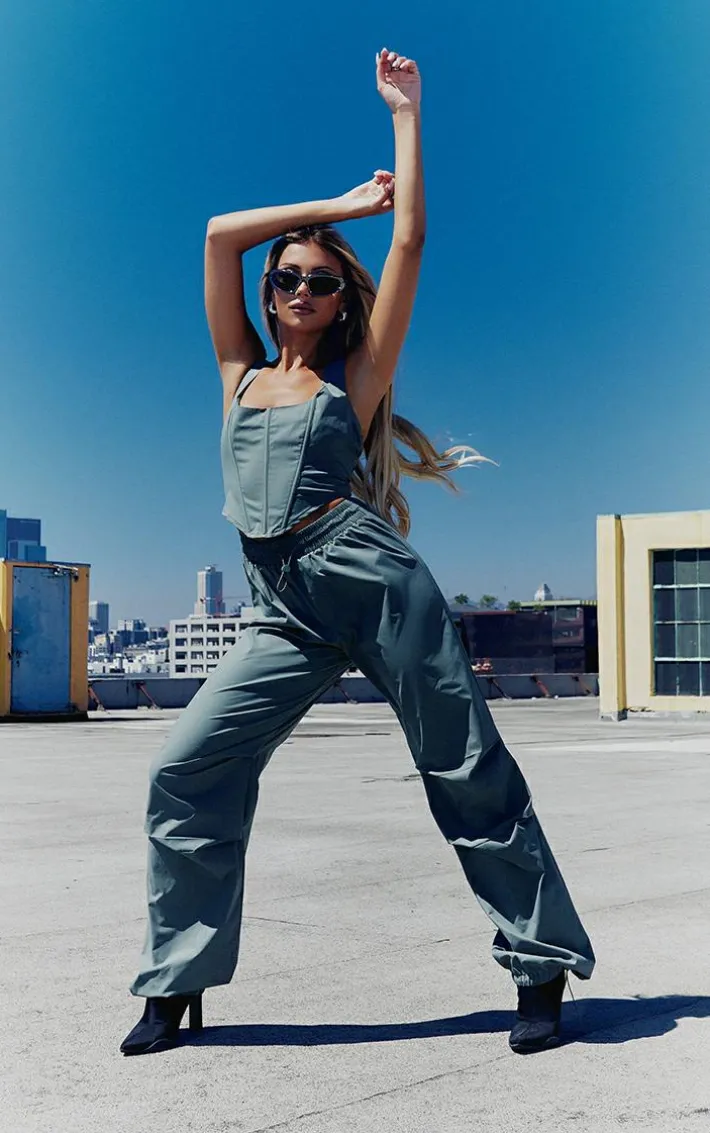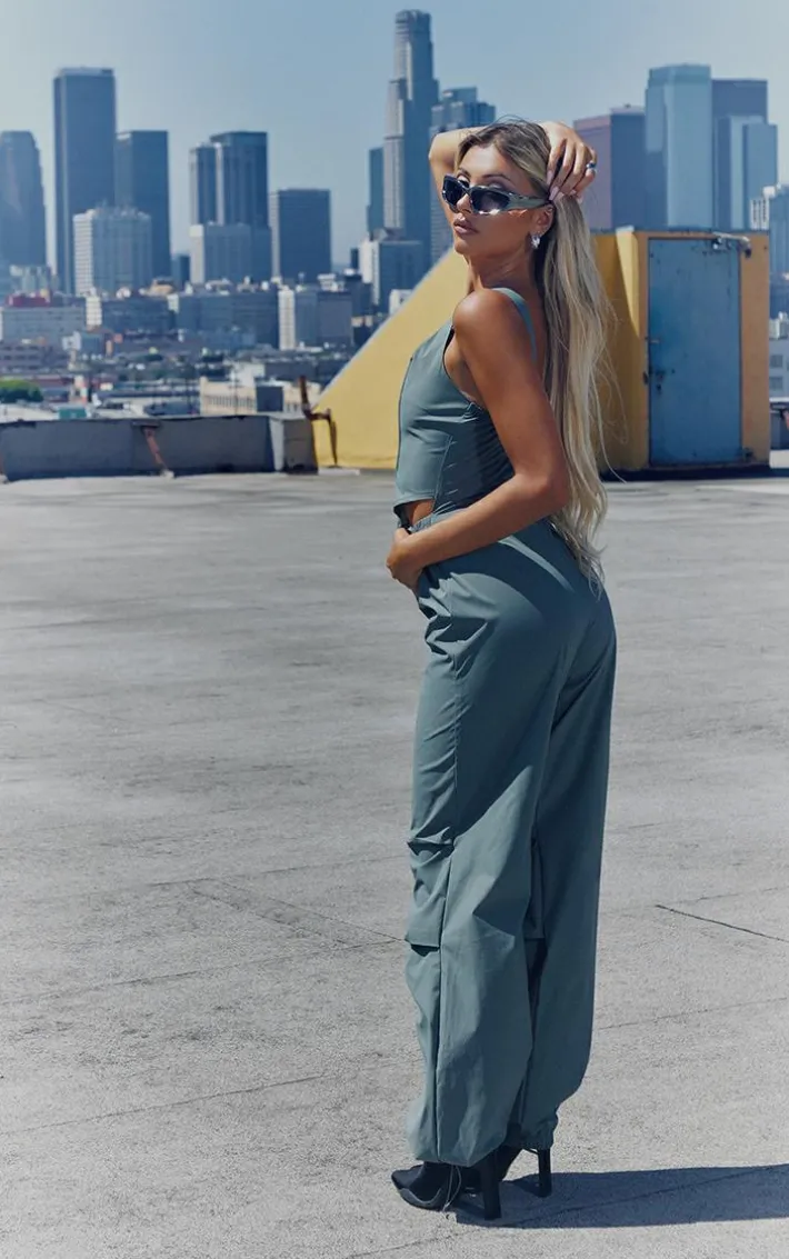 Turn heads for all the right reasons with this green contrast detail parachute utility jumpsuit. This jumpsuit is brought to you in a green parachute material with a utility style and corset detailing, what’s not to love about this? This jumpsuit is everything and more we’re loving paired with your dreamy high heels and accessories for a flawless finish.