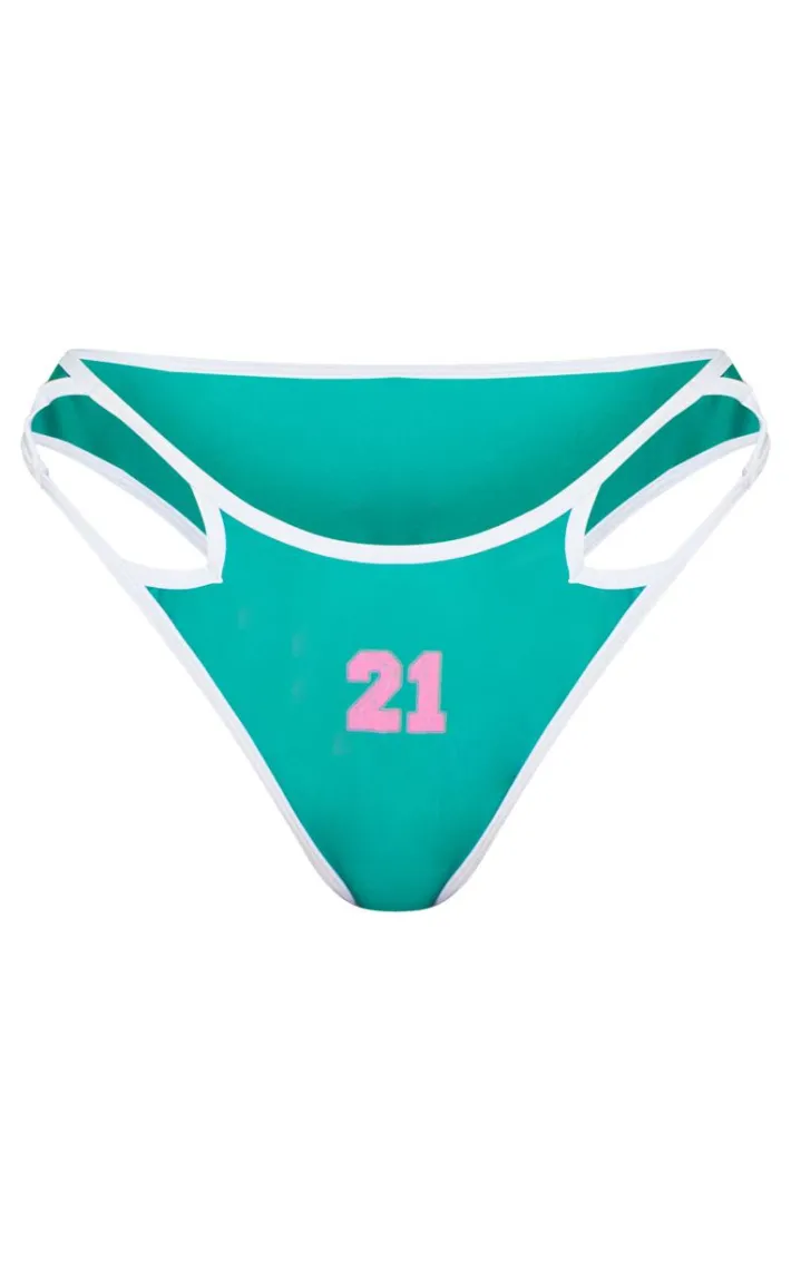 Soak up the sun in style with this green cut out double strap bikini bottoms. These bikini bottoms. These bikini bottoms are brought to you in a green material with a cut-out double strap and a figure-flattering fit, how could you say no? These bikini bottoms won’t let you down. Just add the matching bikini top, sandals and accessories for a look like no other.
