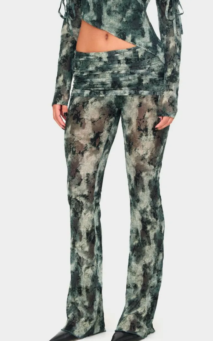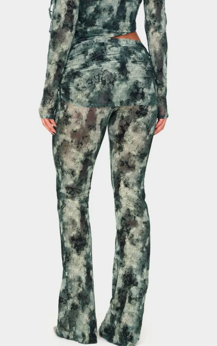 Switch up your weekend style game with these green devore mesh foldover slim flare pants. Brought to you in a green devore mesh material with a foldover design and a flattering flared leg fit, we are in love. Style these flare pants with the matching top, heels and simple accessories for a look that will make you stand out from the crowd.