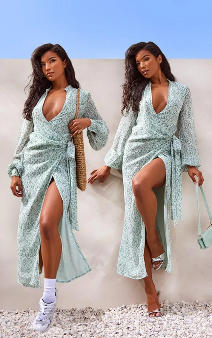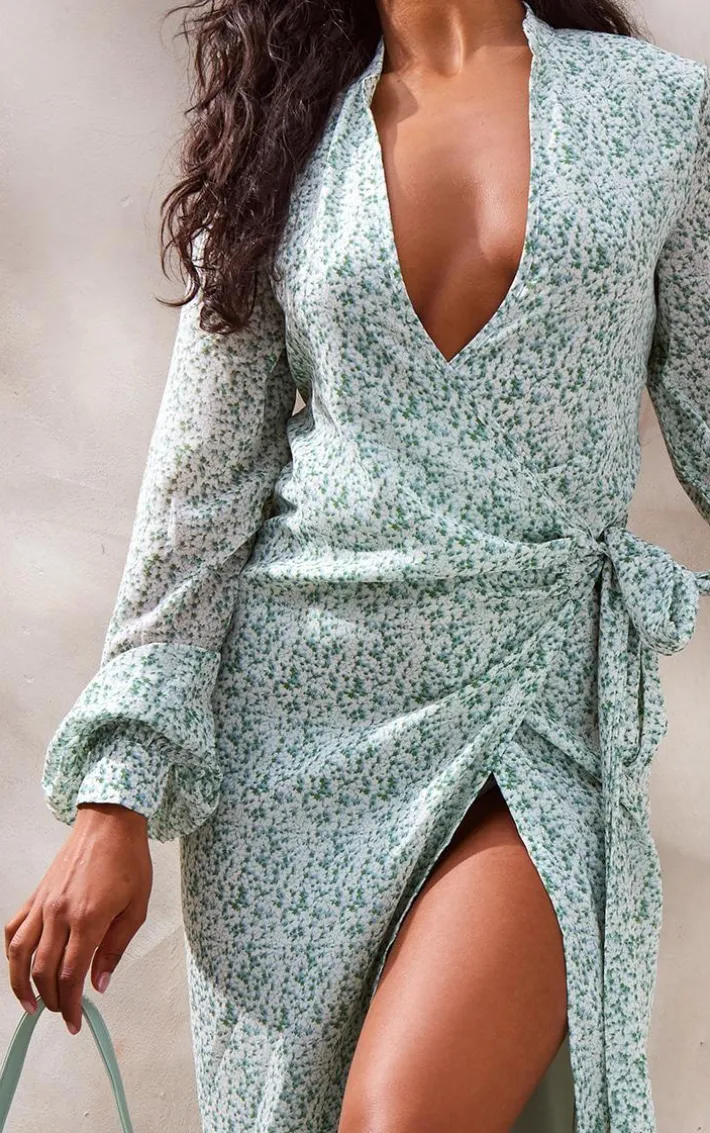 We are obsessing over this green ditsy floral satin wrap midaxi dress this season. With a green hue, you are sure to make heads turning wherever you go. In a satin material for all the luxe vibes, and a floral design, what more could you want ? Team this wrap midaxi dress with some of your fave heels and your go-to accessories to complete the look everyone is loving.