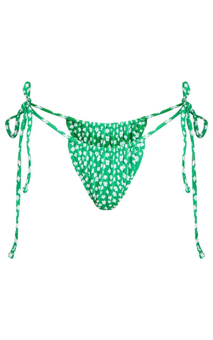 We’re loving these green ditsy floral tie side bikini bottoms for a pop of color to brighten your weekend. Brought to you in a must have green hue, with a ditsy floral design and tie side detail, you’ll be looking and feeling your most confident. Pair with the matching bikini top, why not throw on some sandals and a beach bag? It’s a yes from us.