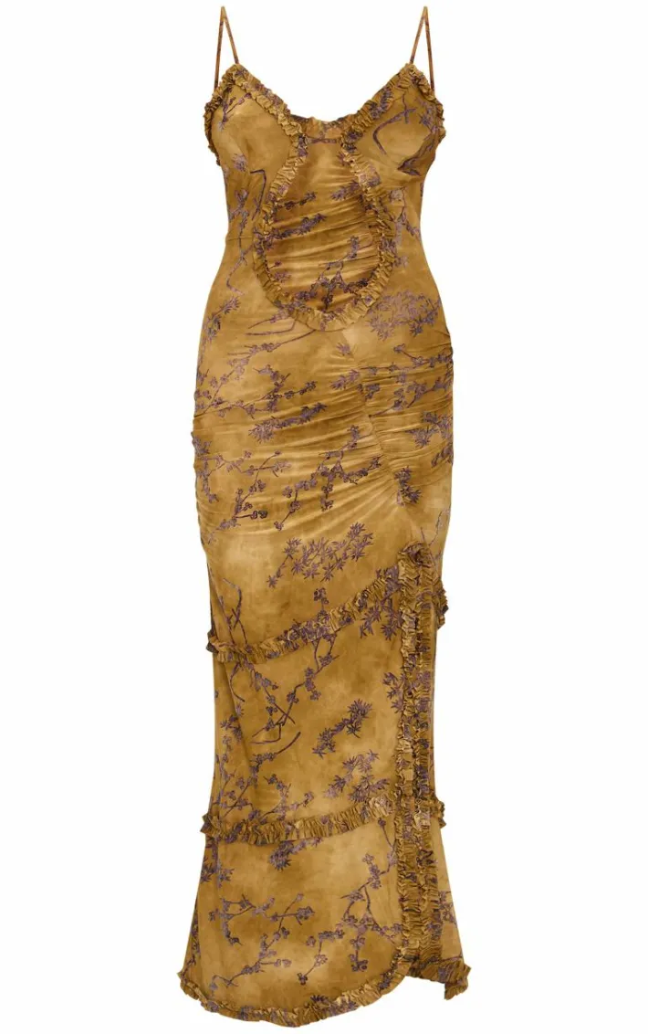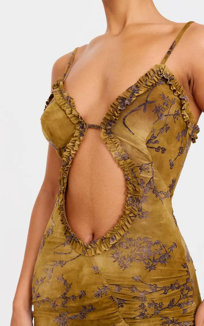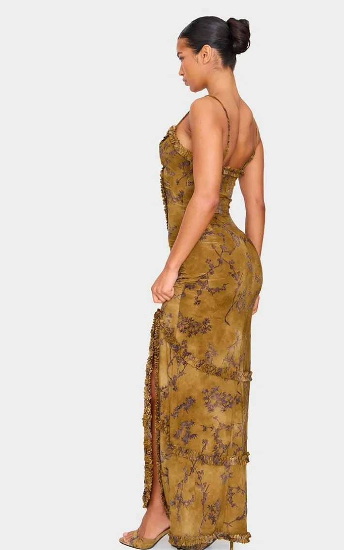 Have all eyes on you at your next big event in this green floral printed devore cut out cami split hem maxi dress. Made with an unreal green floral printed devore fabric, a cut out feature and split hem finish, what are you waiting for? You’ll look so chic when styled with high heels and a faux leather bag.