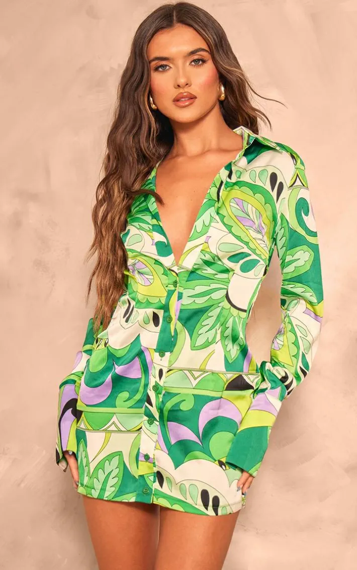 Add some statement hues into your look with this green floral printed shirt dress. This shirt dress is brought to you in a green floral print material with a button-up front and a figure-flattering fit, how could you say no? This shirt dress is calling your name. Simply style this with high heels and accessories for a flawless finish.