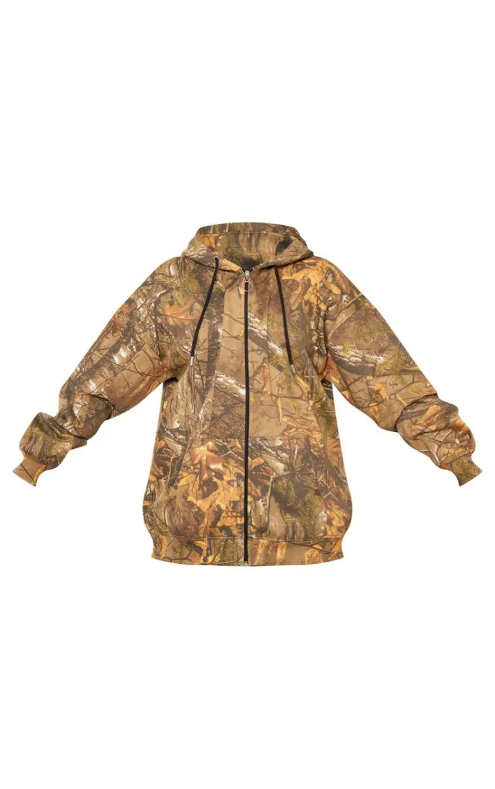 Add an edge to your outfit of the day with this green forest camo black badge zip up oversized hoodie. Brought to you in a green hue material with a forest camo print design, a zip up fastening and an oversized fit, what more could you want? Team this oversized hoodie with the matching shorts, a white top and sneakers for an off-duty look we’re loving.