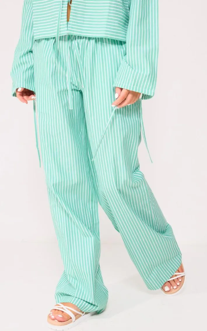 Take your everyday look to the next level with these green pinstripe wide leg pants perfect for your everyday styling and beyond. Brought to you in a green pinstripe material with a wide leg fit, we simply can’tget enough. With It’s versatile style these pants are sure to be your new go-to. Style with the matching bottoms, sandals and accessories for a look that we can’tget enough of.