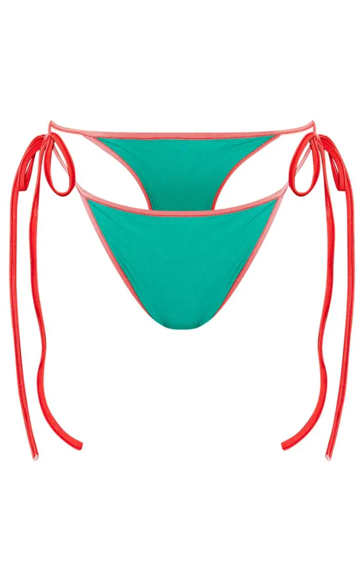 Get your glow on with these green Portugal tie side bikini bottoms. Brought to you in a green material that is sure to have you standing out from the rest. Its tie side will give you a flattering fit like no other. These bikini bottoms are sure to be your new go to. Team with the matching bikini top and your fave accessories for a look like no other.