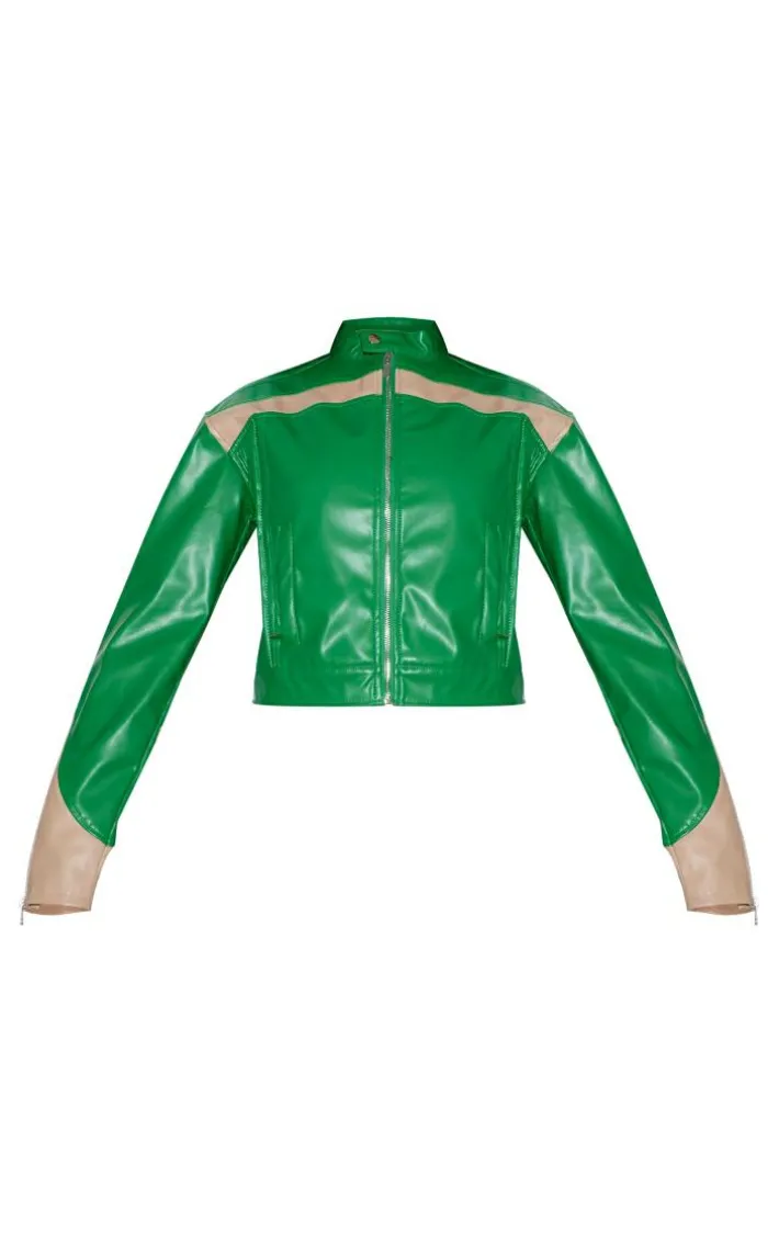 You won’t be able to resist this green PU racer neck pleated detail jacket. Brought to you in a green PU material with a racer neck that will bring all the edge to your outfit of the day. Its pleated detail will have you feeling totally on trend no matter what. Team with wide leg pants, sneakers and gold accessories for a fool proof finish like no other.