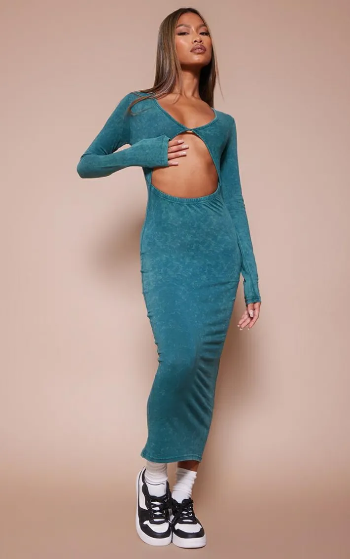 Switch up your off-duty days with this green-washed cotton cut-out long-sleeve midaxi dress. This midaxi dress is the perfect piece for your everyday look and is sure to impress whether it be for a shopping date with the dolls or a wholesome walk. With a green-washed cotton material, cut-out details and long sleeves, how could you say no? For the ultimate fool-proof finish, add box-fresh sneakers and your fave accessories.