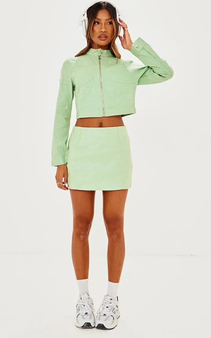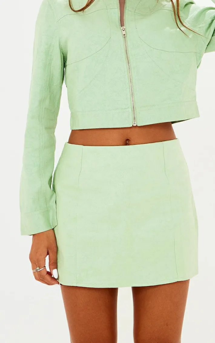 Add some fresh feels to your off-duty wardrobe with this green waxed denim seam detail mini skirt. Its green waxed denim material is sure to elevate your look to the next level and its seam detail gives your look that extra edge. This mini skirt is the ultimate addition to your wardrobe doll and will gain you all the compliments. Shop the look and team with the matching top, chunky sneakers and your fave accessories for an off-duty combo that is sure to impress.
