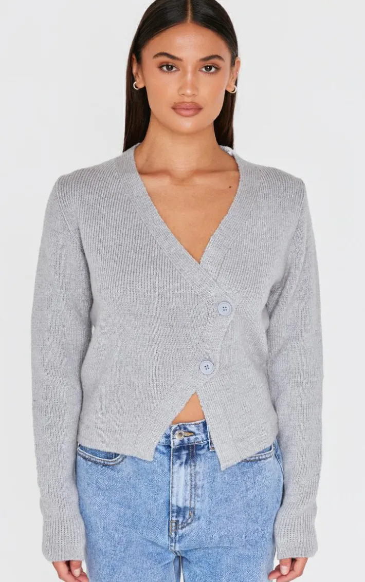 This grey knit asymmetric button cardigan is sure to have you looking and feeling all kinds of chic. Brought to you in a neutral grey shade, with a cosy knit material and flattering asymmetric button finish, this is all the new you need. Team with a pair of jeans and simple sneakers for a look that won’t go unnoticed.