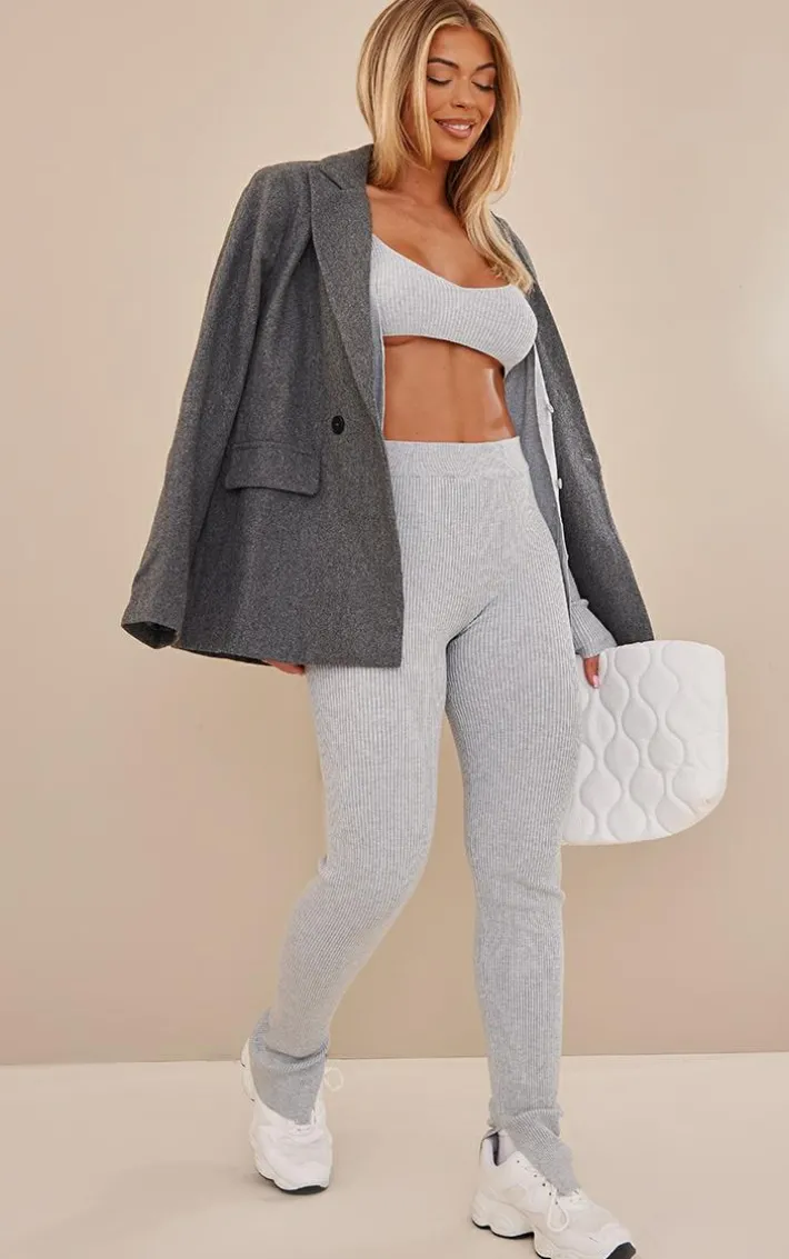 Take your knitwear collection to a whole new level with this must-have bralet. Featuring a grey knitted ribbed material with a flattering fit, we are obsessed. Simply pair with the matching pieces, fresh kicks and accessories for a chilled out combo.