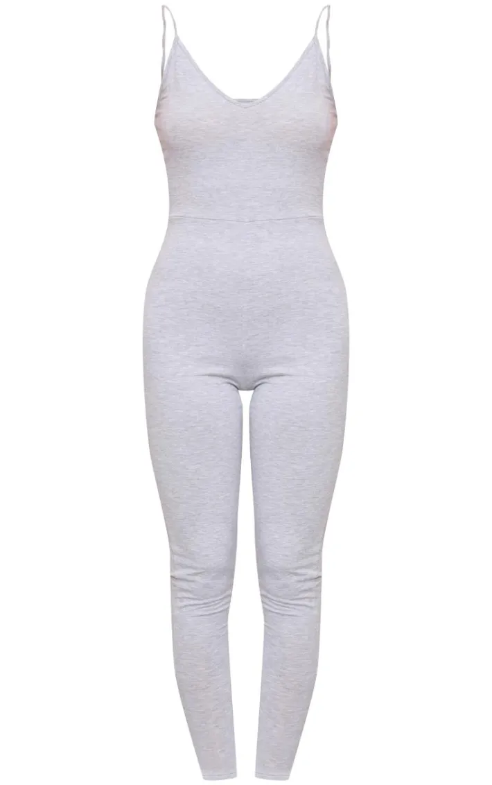 This plunging one-piece is perfect for chilled off-duty days and beyond. Featuring a grey marl jersey material with thin shoulder straps and a figure-worshipping fit, team it with some lace-up kicks to finish off the look.