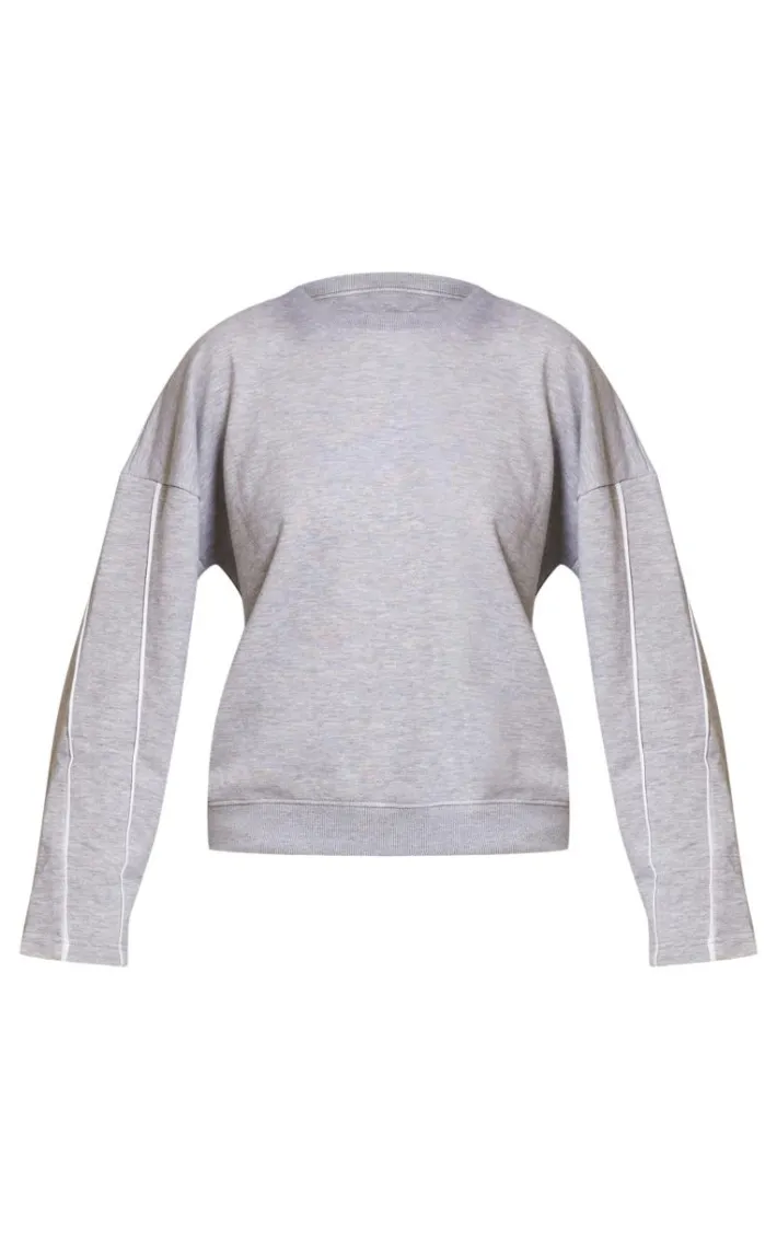 Look all kinds of chic on your next night in with this grey marl contrast piping detail Sweatshirt. Brought to you in a grey marl hue material with a contrast piping detail, this Sweatshirt is a must have. Style with the matching sweatpants, fresh kicks and burgundy accessories for an on trend look everyone will be asking about.