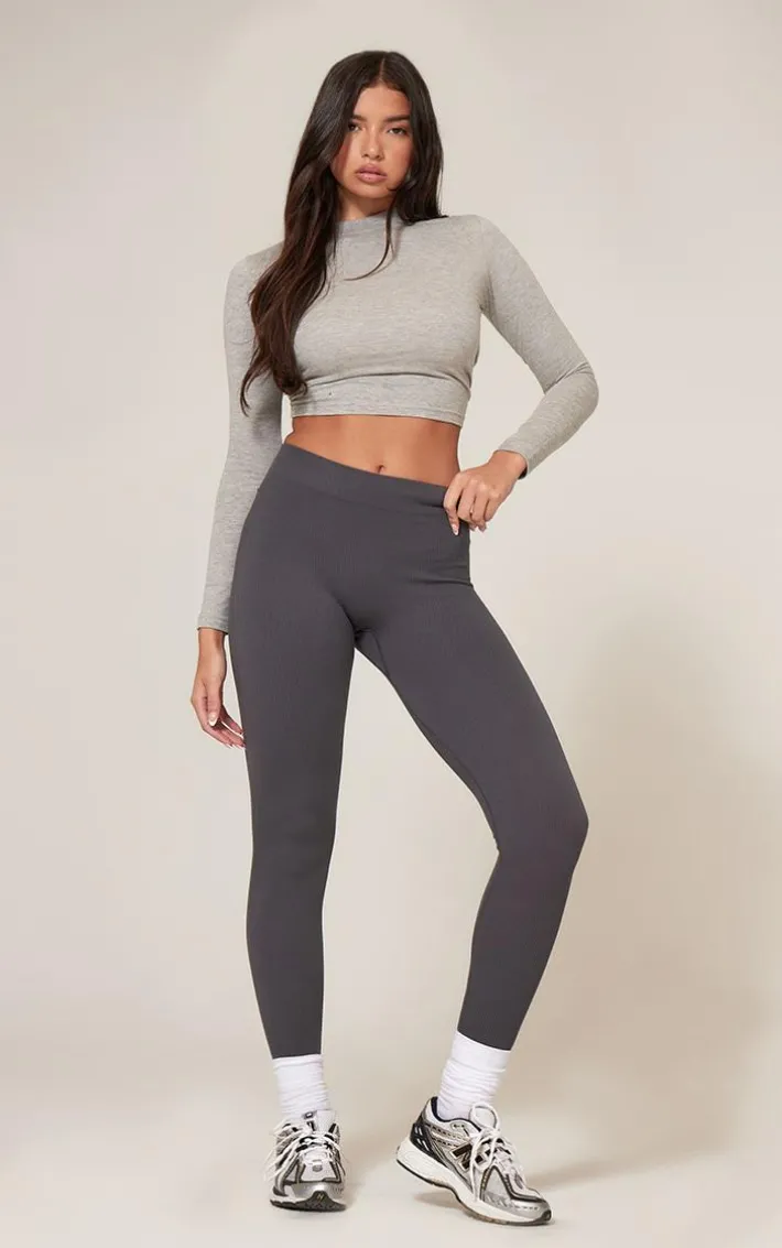 Your basics collection is calling out for this grey marl crew neck long sleeve fitted top. Brought to you in a grey marl material with a crew neck design and a long sleeve fit, we are seriously obsessed. This fitted top is all you need for those off-duty gym days. Team with some comfy leggings and your go-to sneakers for a look like no other.
