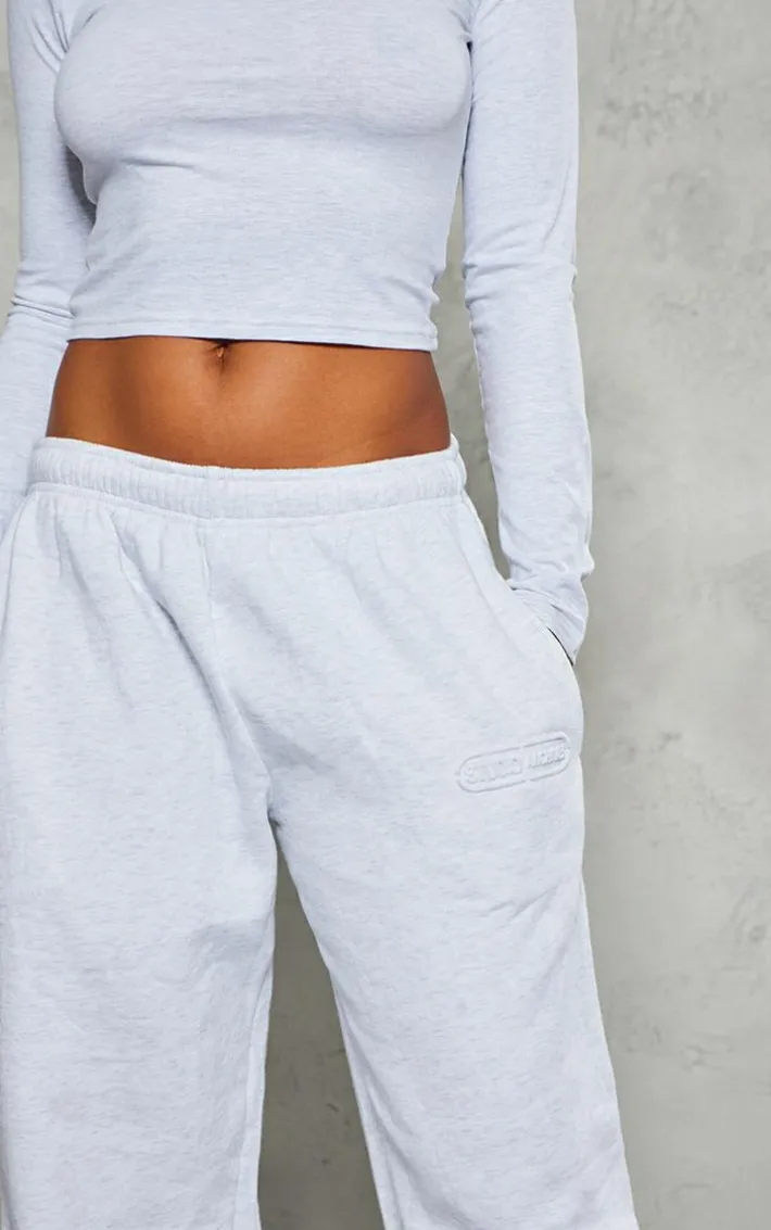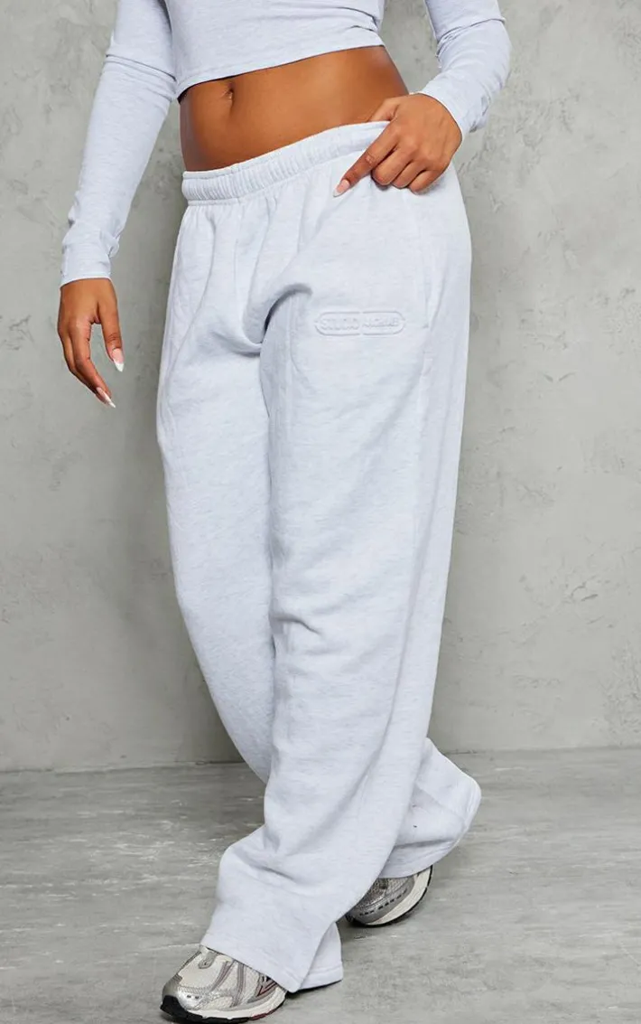 These grey marl embossed studio archives wide leg sweatpants will instantly elevate your basics collection. Brought to you in a versatile grey marl shade, with a luxe embossed ‘Studio Archives’ detail and flattering wide leg finish, add these to your bag for a look you won’t regret. Style with the matching top and sneakers for a fool proof finish.