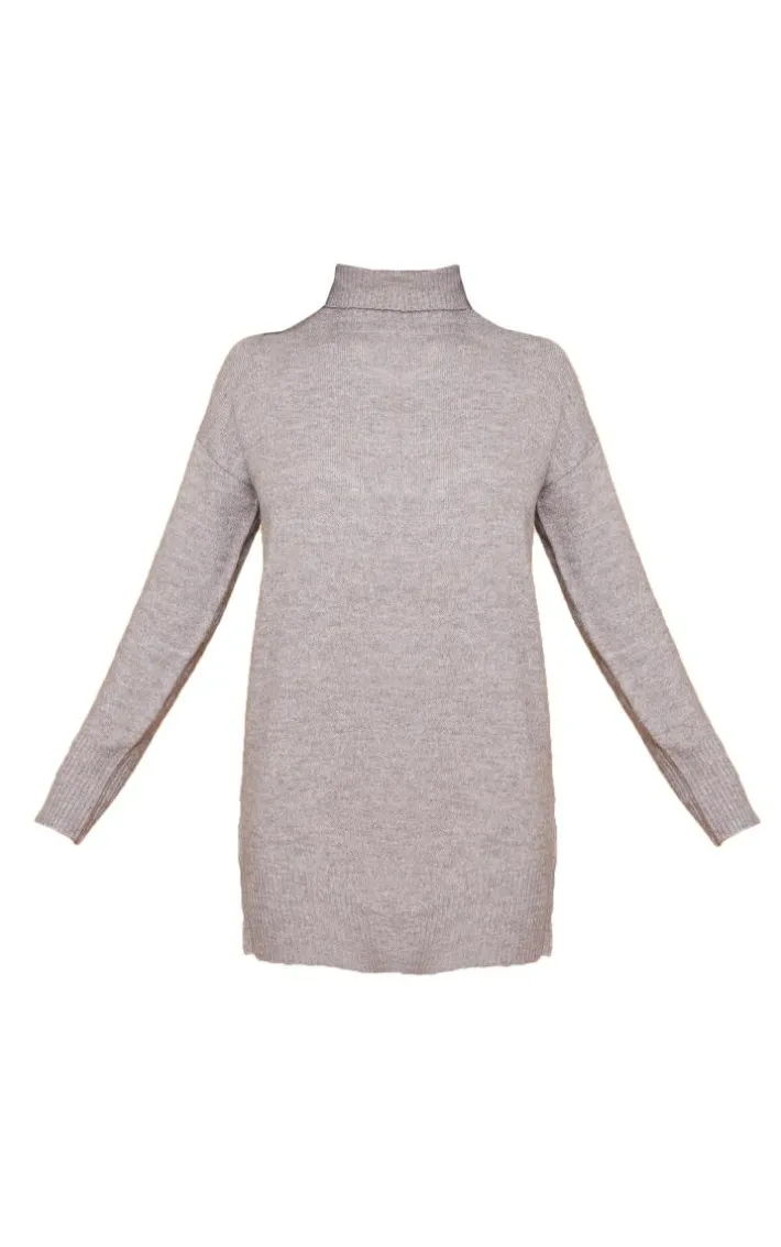 We’re in love with this grey marl knit roll neck sweater dress for your new season wardrobe. Brought to you in a grey marl knit material with a roll neck design and a relaxed fit, it’s a yes from us. Whatever your plans are this season, this sweater dress is sure to nail the dress code and gain all the compliments. Style seamlessly with a trench coat and comfy boots for a look that everyone will want.