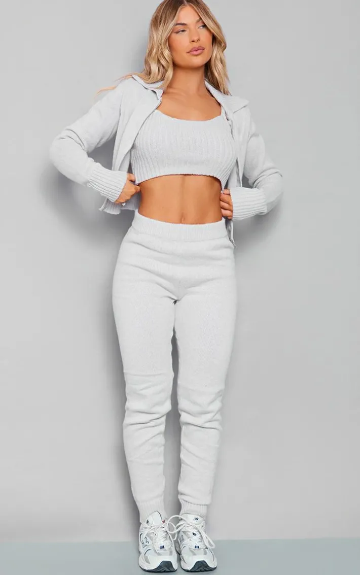 Switch up your new season style game with these grey marl knitted leggings, we’re seriously in love. Made using a grey marl knitted material with a figure-flattering fit and a relaxed design, these leggings are perfect for your next chilled day at home and beyond. Style these knitted leggings with the matching top and chunky sneakers for a fool proof finish.