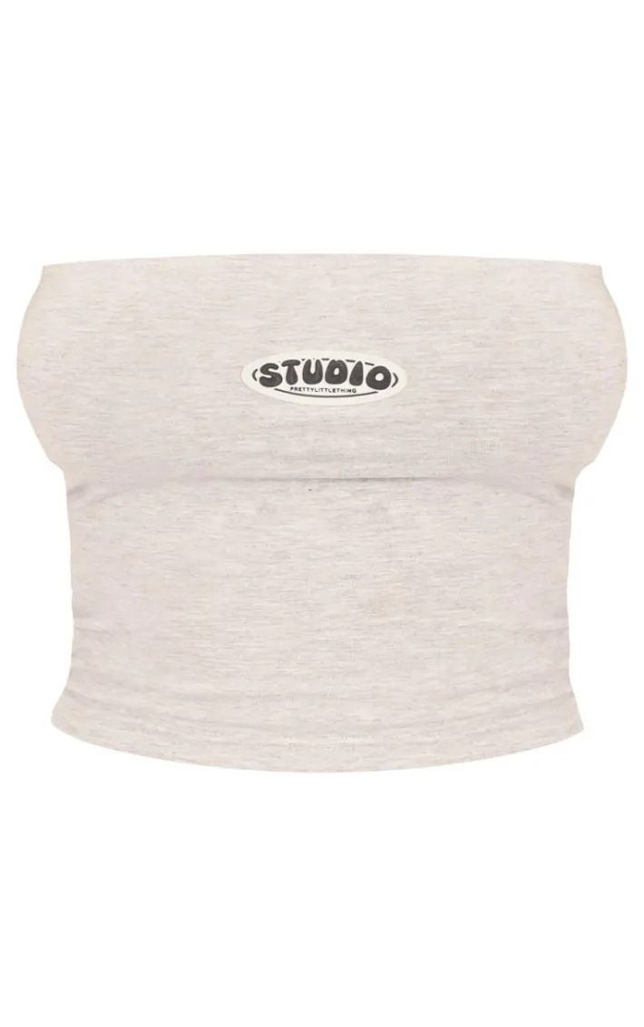 Keep it chic with this grey marl studio badge detail bandeau top. Brought to you in a grey marl material with a ‘Studio’ badge detail adding a touch of luxe like no other, what more could you want? This bandeau top is the perfect addition to every s wardrobe. Team with your fave accessories and the matching sweatpants to elevate the look even further.