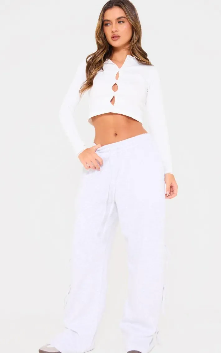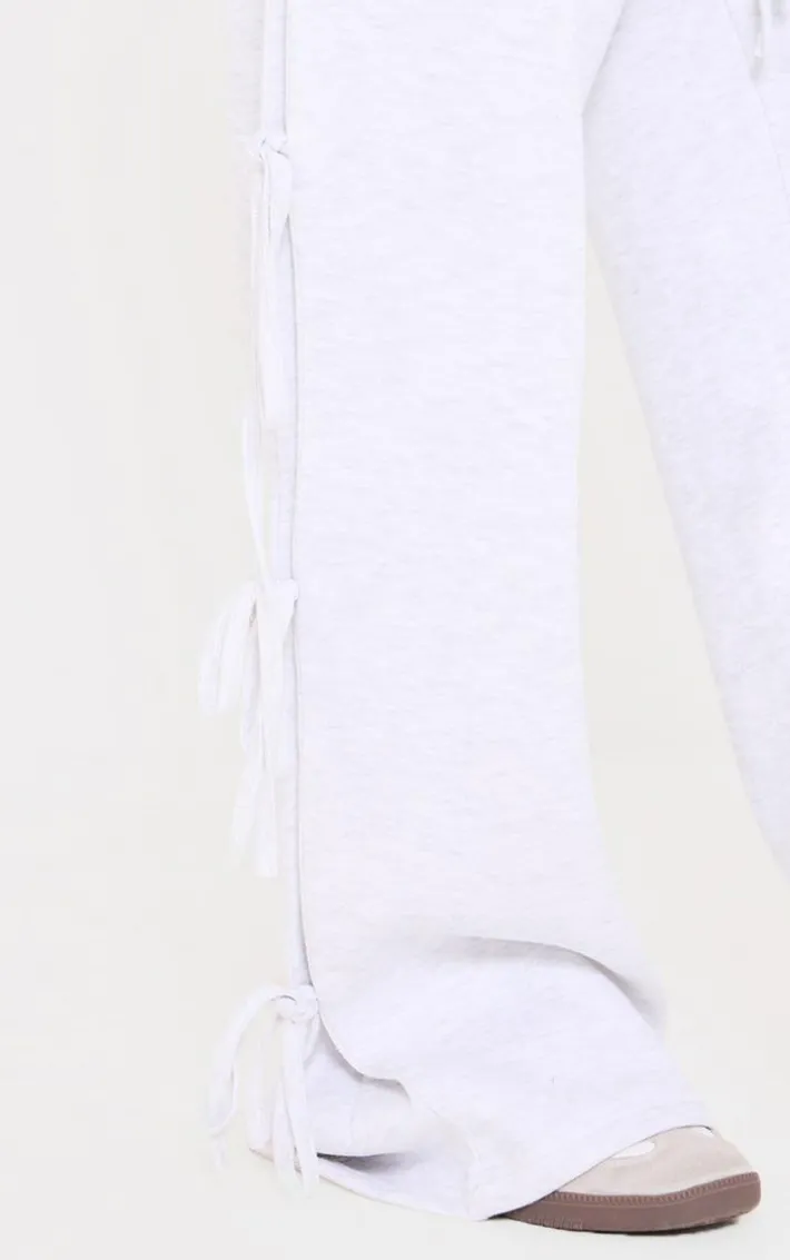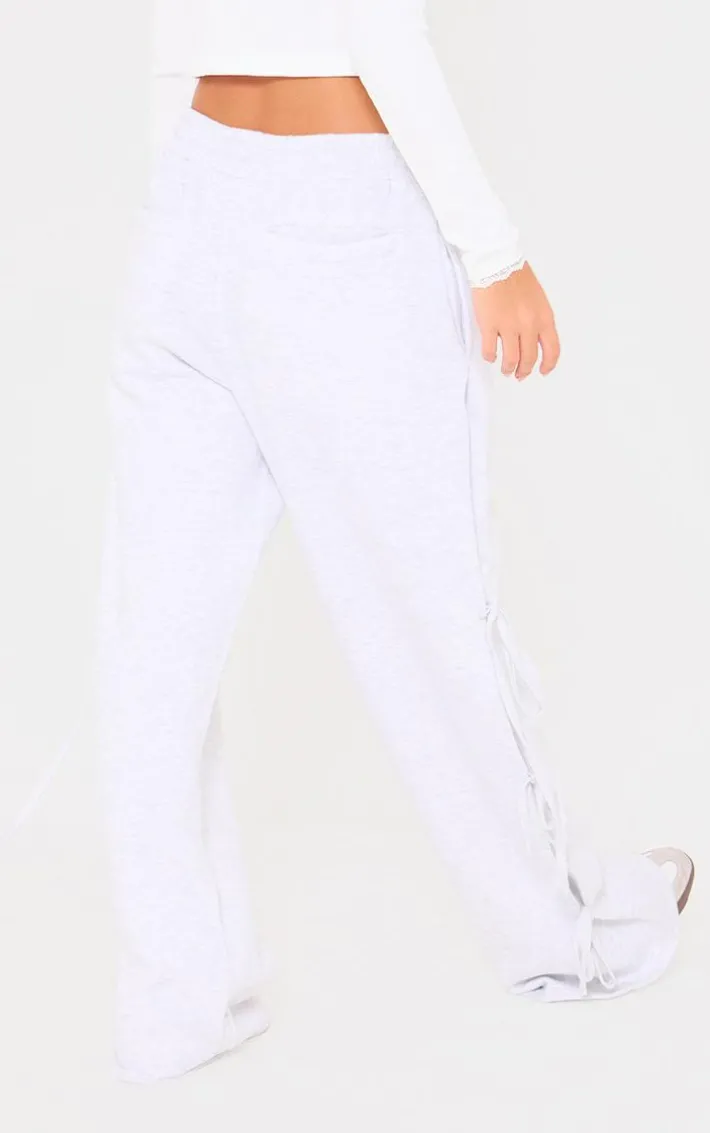 Elevate your basics collection with these grey marl tie side detail wide leg sweatpants. Brought to you in a versatile grey marl shade, with a luxe tie side detail and wide leg finish, what’s not to love? Pair with a long sleeved tee and sneakers to complete the look. It’s a yes from us.
