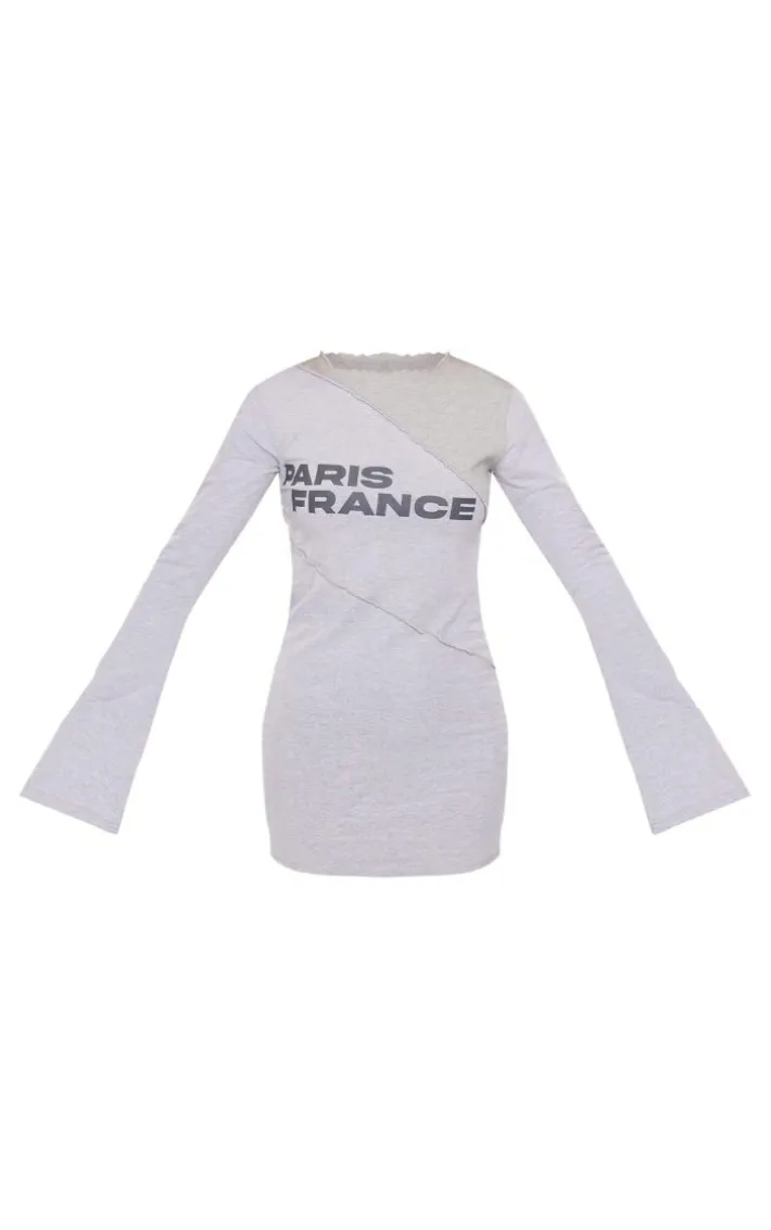 Switch up your off-duty style game this season with this grey paris graphic exposed seam flared sleeve bodycon dress. Made from a grey hue material with a ‘Paris’ graphic design, exposed seam detail and flared sleeves, what’s not to love? Perfect for adding that extra edge to your everyday look, this bodycon dress is at the top of out hitlist. Team with chunky boots and a baseball cap for a fool-proof finish.