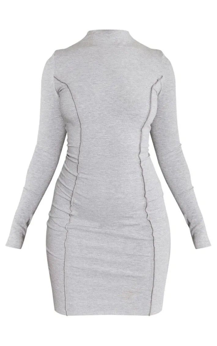 Found some last-minute weekend plans doll and need an unreal ‘fit? Then we have you covered with this styling staple, a grey ribbed long sleeve seam detail bodycon dress. With a grey ribbed material, long sleeves and seam detailing, we’re obsessed. Work your styling techniques and add clear high heels and a black shoulder bag for a weekend-worthy finish that will gain all the likes..