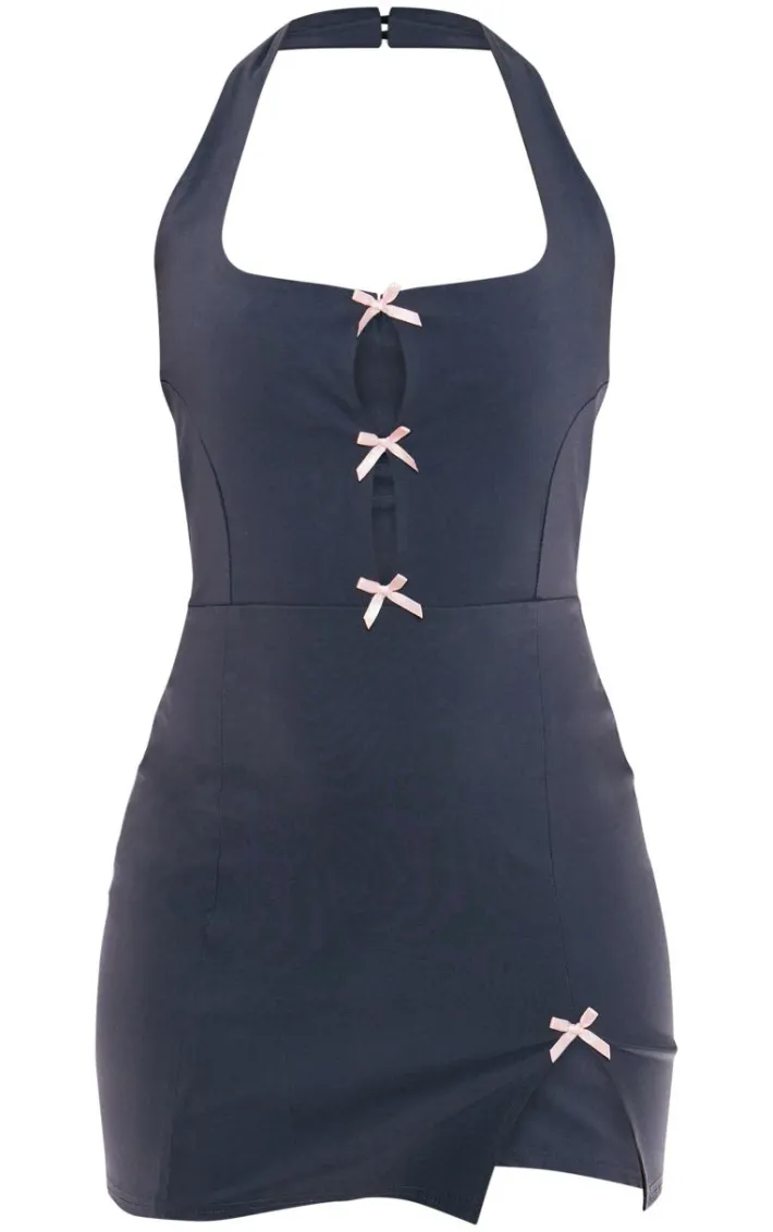 Make a statement with this grey stretch woven bow detail halterneck bodycon dress. Brought to you in a grey stretch woven material with a bow detail, you are sure to set major trends this season and beyond. Its halterneck design and bodycon fit will have you tapping into your confident side. Team with your fave accessories and go-to heels to finish off the look we are loving.