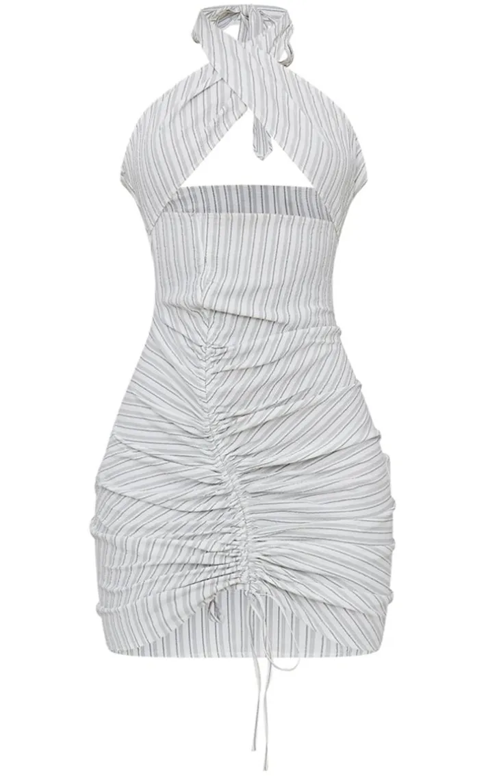 Say hello to your new season staple with this grey stripe textured wrap neck ruched bodycon dress. This bodycon dress is brought to you in a grey stripe textured material with a wrap neck, ruched detailing and a figure-hugging fit, we can’t get enough of this dress. To take the look further style this dress with a black shoulder bag, sunnies and sandals. It’s a yes from us.