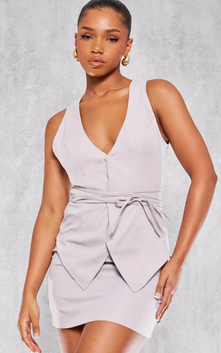 Make weekend styling look effortlessly chic with this grey tie wrap waist vest mini dress. Brought to you in a grey material with a vest style, a wrap waist design and a mini fit, how can you say no? Style this mini dress with loafers and gold accessories for a look that will have eyes on you for all the right reasons.