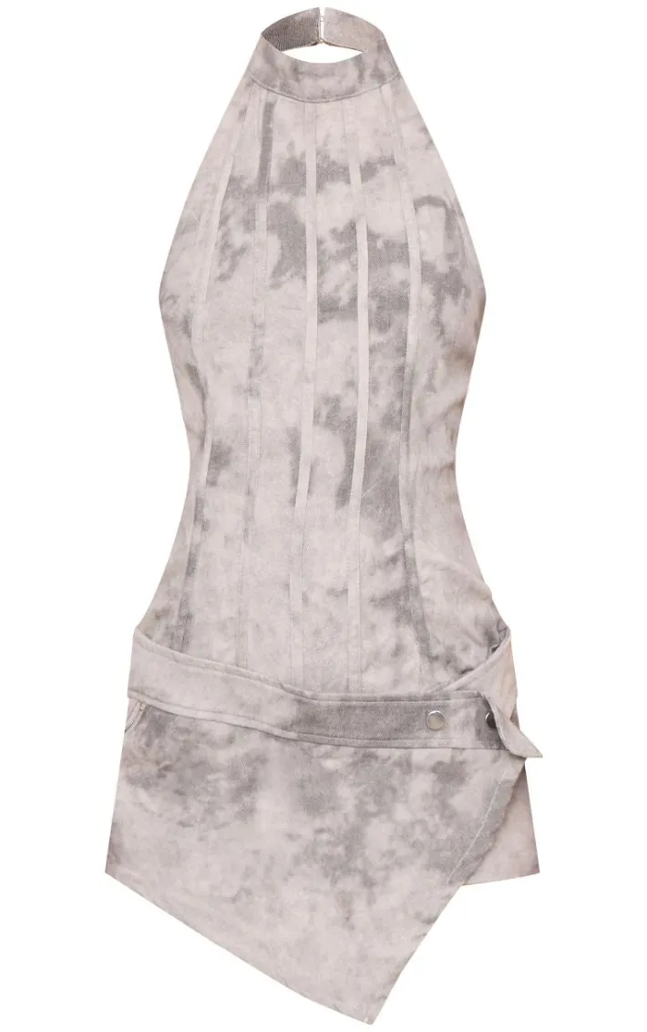 This grey washed twill high neck wrap detail skort romper will have you looking effortlessly glam for any occasion. With its high neck design, grey washed twill fabric and wrap detail skort, it’s at the top of our wish list. Channel confidence by styling this romper with buckle detail heels, bold silver hoops and a slicked back bun.