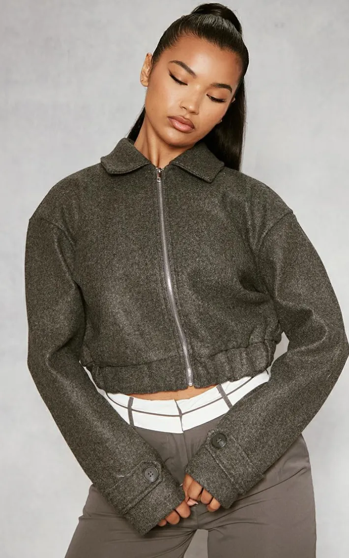 Say hello to your new season staple with this grey wool look zip front bomber jacket. Brought to you in a grey wool material with a zip front design, what more could you want? This bomber jacket is here to banish any of your what to wear dilemmas doll. Style with some wide leg pants, sneakers and your fave accessories for a look that have you being the topic of everyone’s conversation.
