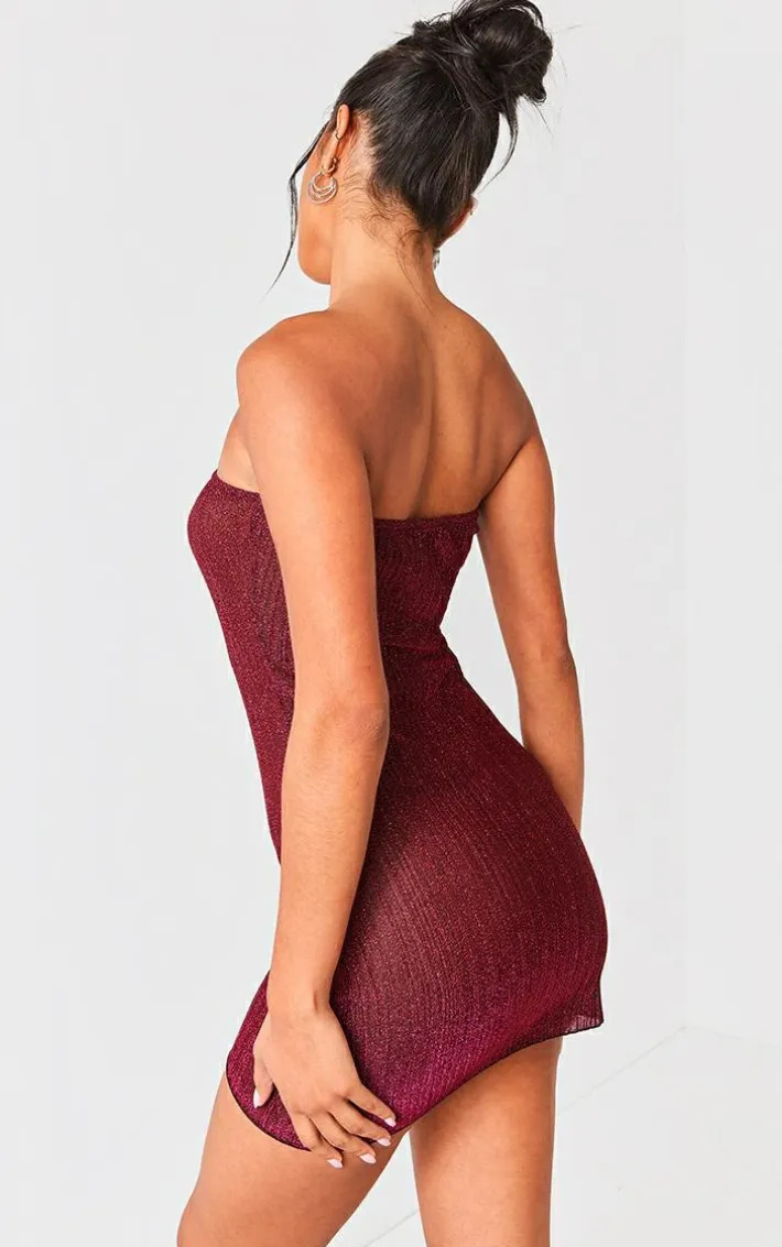 We’re all about the glam vibes this season and this hot pink glitter plisse bandeau lettuce hem bodycon dress, you’re sure to be earning all the compliments. With a hot pink glitter plisse material, a lettuce hem design and a bandeau style, this bodycon dress just went straight to the top of your hit list. Style it with a faux fur coat, wrap around heels and your fave accessories for a look no one will forget.