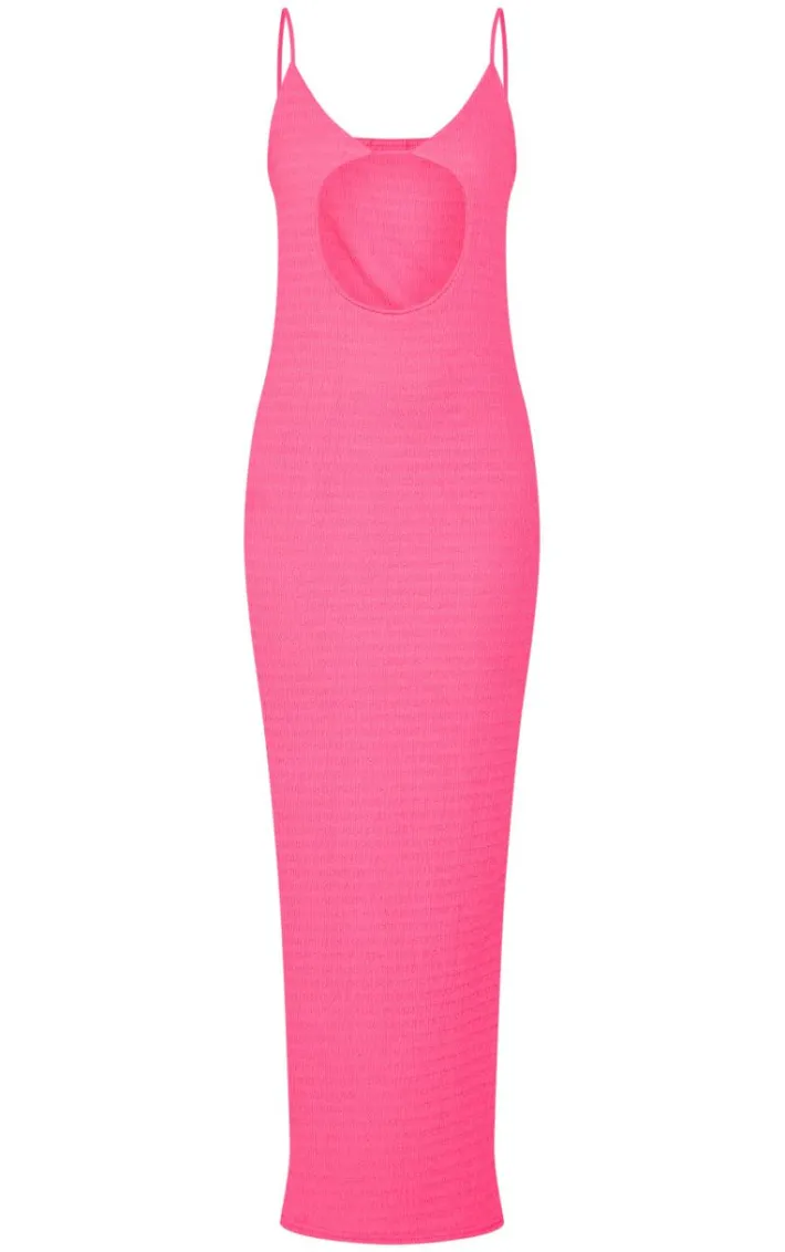 Feed your new season style need with this hot pink textured cut out detail strappy midi dress. Brought to you in a hot pink textured material with a cut out detail and strappy desing, this midi dress is a dream. Style with gold heels, your fave accessories and a mini bag for a combo we’re crushing on.