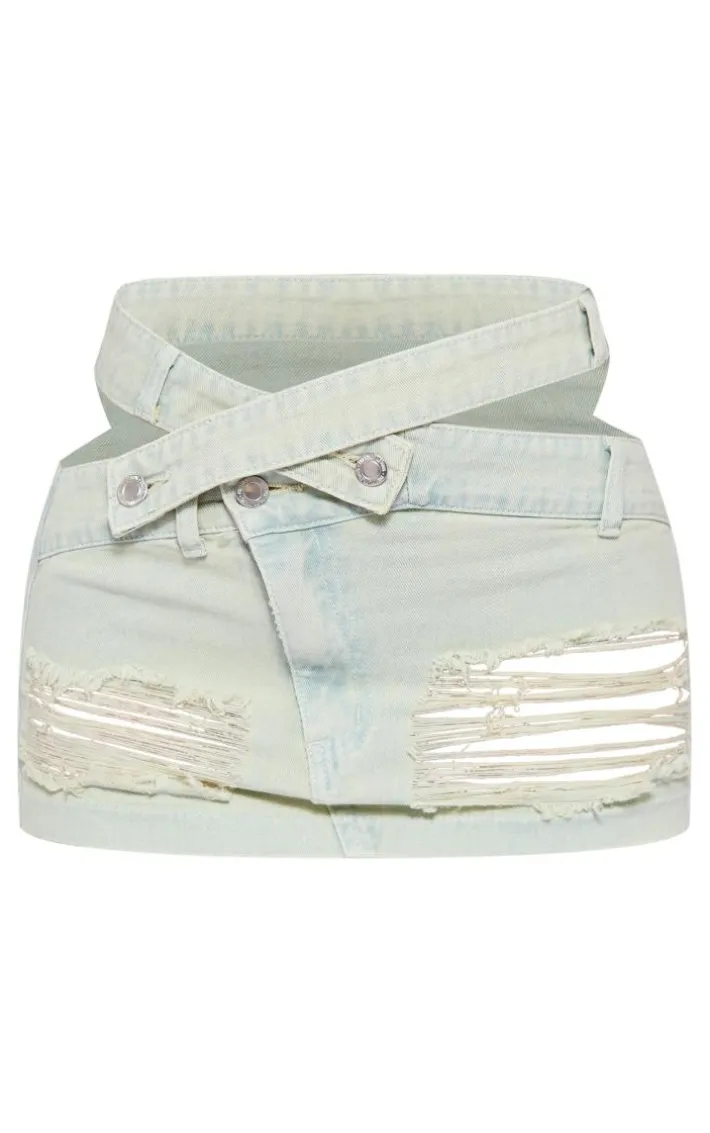We are all about the denim look right now and this ice blue wash distressed cut out waistband denim mini skirt is sure to help you stay on-trend all season long. Made from an ice blue wash denim material and featuring a cut out waistband design with distressed detailing, we just can’t get enough. Style this mini skirt with the matching corset top and heeled boots for a look that is sure to get you noticed.