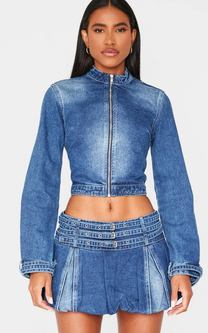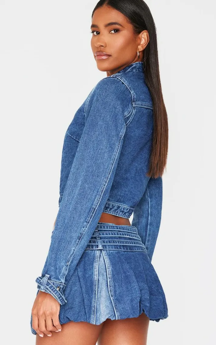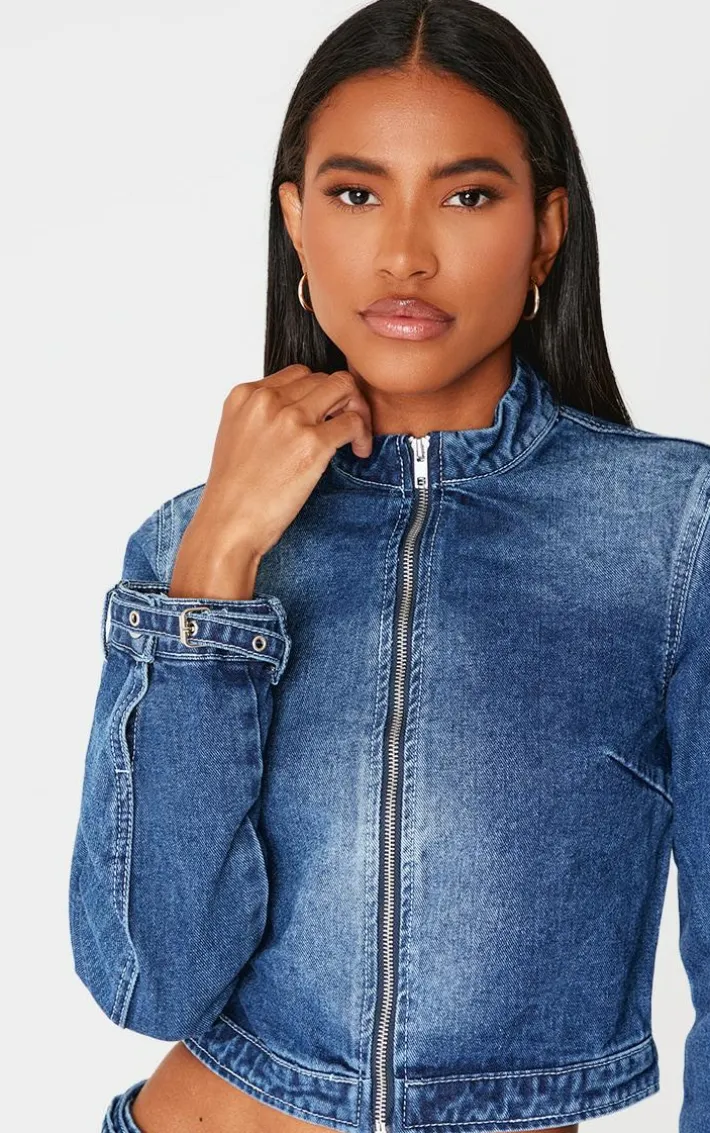 This indigo buckle detail cropped moto jacket is calling your name. You can’t go without this style staple. Brought to you in an indigo hue denim material with a buckle detail and cropped length, this moto jacket is everything you need and more. Style with the matching mini skirt, knee high heeled boots and gold accessories for an edgy combo we can’t get enough of.