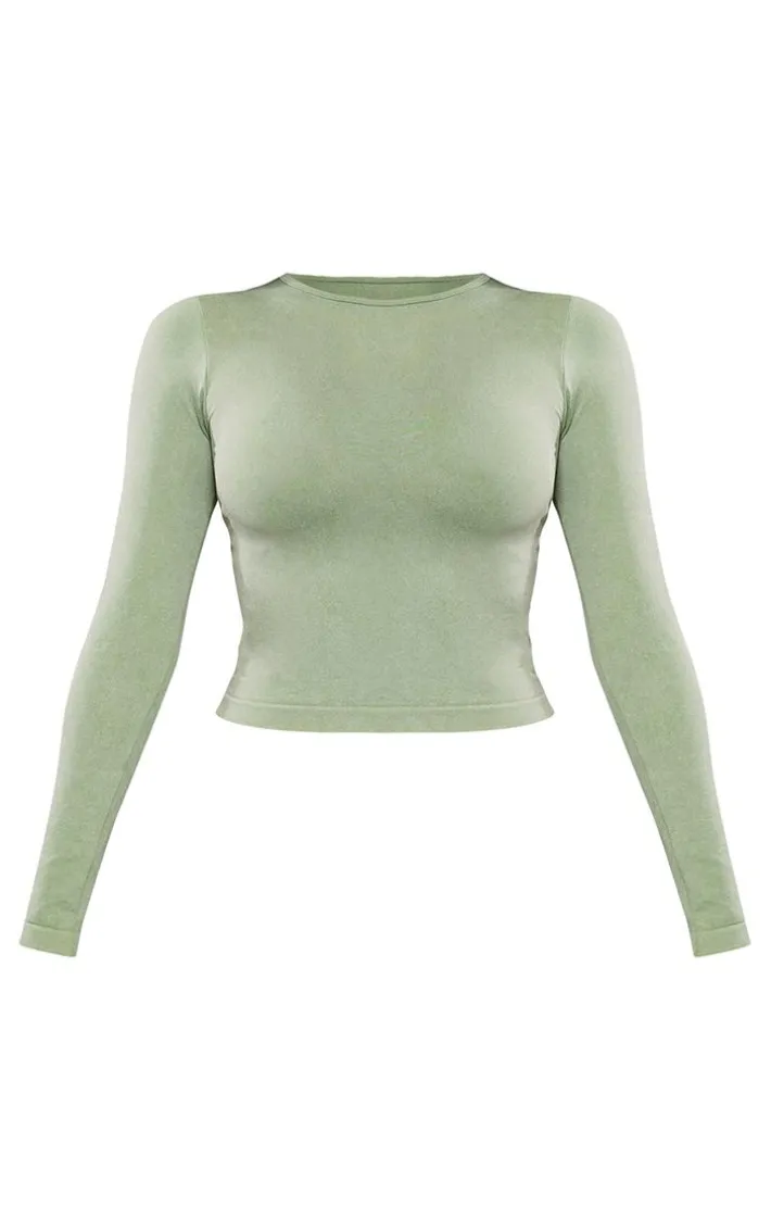 Take your activewear wardrobe to new heights with this khaki acid wash seamless long sleeve top, we’re seriously in love. This top features a khaki acid wash material with a seamless design and long sleeves, you’ll be adding it straight to your basket. Team with the matching bottoms, your fave sneakers and a cap for a chic, on the go look.