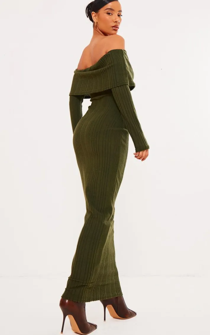 Make this khaki brushed rib oversized bardot maxi dress a staple in your new season wardrobe. Brought to you in a khaki brushed rib material with an oversized bardot neckline and a figure-flattering fit, how can you not be obsessed? Style this maxi dress with heeled boots and statement gold accessories for a look that is perfect for dressing up or down to suit your weekend plans.