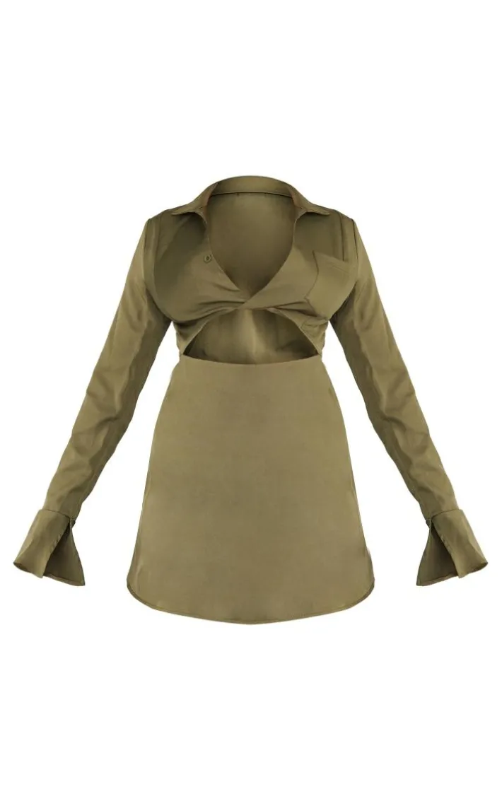 Add a little attitude to your outfit of the day with this khaki collar detail cut out flare sleeve shift dress, we’re seriously in love. Made using a khaki hue material with a cut out design and flared sleeves, this shift dress is here to solve all your styling dilemmas. Pair with some knee high chunky boots and gold hoop earrings for an instant chic finish.