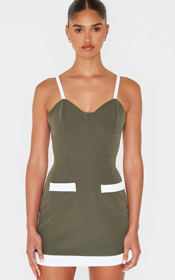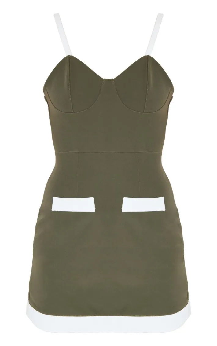 Look all kinds of chic in this khaki contrast pocket detail mini dress. Brought to you in a khaki hue material with a contrast design and pocket detail, this mini dress is all the new you need. Style with slip on heels and simple accessories for a look like no other.