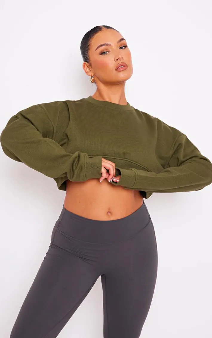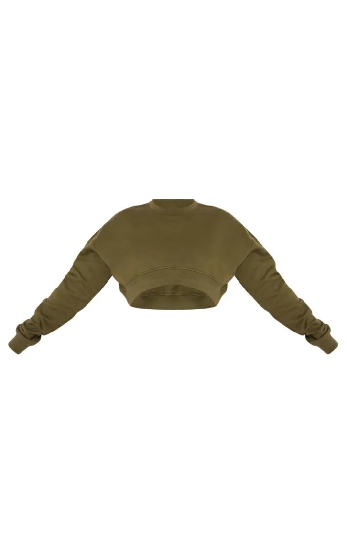 Give your new season wardrobe the chic upgrade it deserves with this khaki curve hem cropped Sweatshirt, it is perfect for those chilled off-duty days. Brought to you in a khaki hue material with a curved hem and a cropped length, this Sweatshirt is here to solve all your styling dilemmas. Team with some flared leggings, chunky sneakers and your fave accessories to elevate the look further.