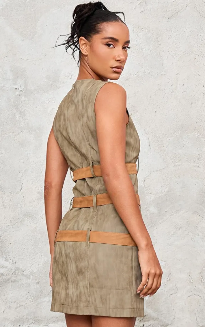 This khaki faux leather belted bodycon dress is calling your name. Brought to you in a must-have khaki shade, with a luxe finish faux leather material and belted detailing, you’ll be easily remembered as best dressed for any occasion. Style with some khaki knee length boots and silver accessories for a look we’re crushing on.