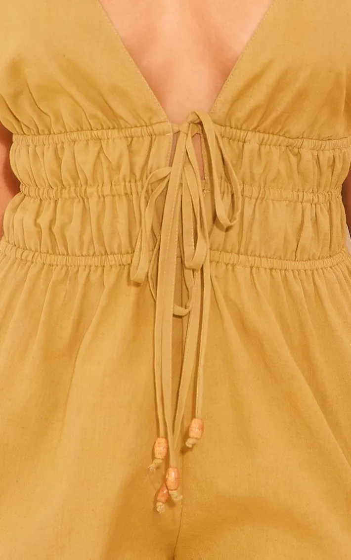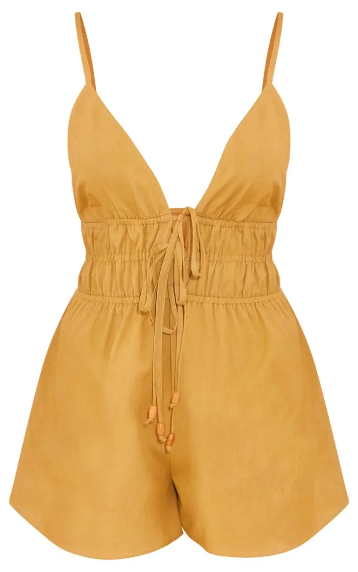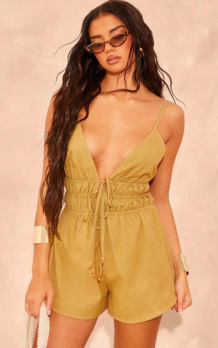Your wardrobe is calling out for an update, and we are obsessing over this khaki linen look halter neck strappy romper. Brought to you in a khaki linen look material with a halter neck design, what more could you want? this strappy romper is the perfect addition to your collection. Team with a pair of sandals and a statement bag for a look like no other.