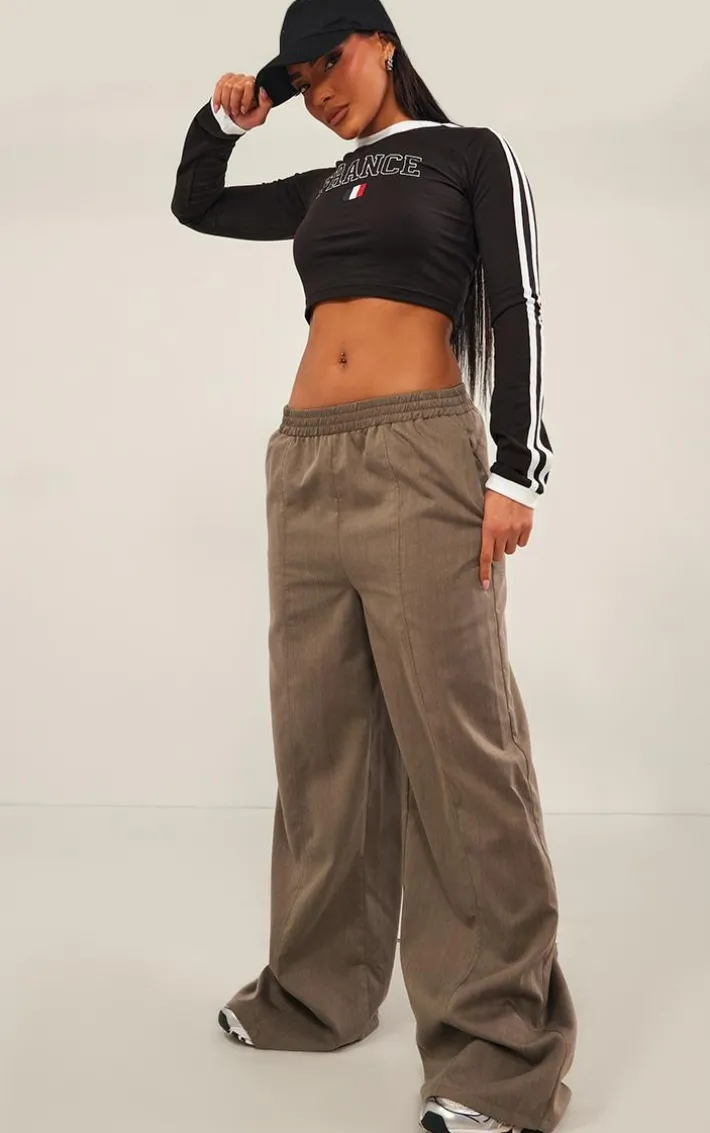 Add a little edge to your outfit of the day with these khaki marl woven pintuck elasticated waist pants, you won’t be able to resist. These pants feature a khaki marl woven material with a pintuck design and an elasticated waist, you’ll be adding them straight to your basket. Just add a long sleeve crop top, sneakers and a cap for a fresh, off-duty look.