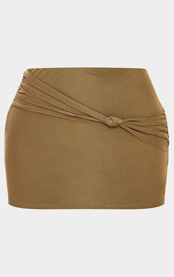 Take your weekend look to new heights with this khaki mesh knot detail micro mini skirt. Brought to you in a khaki hue mesh material with knot detailing and a micro mini fit, how can you resist? Pair this micro mini skirt with the matching top, heels and gold accessories for a look that is sure to steal the stares for all the right reasons.