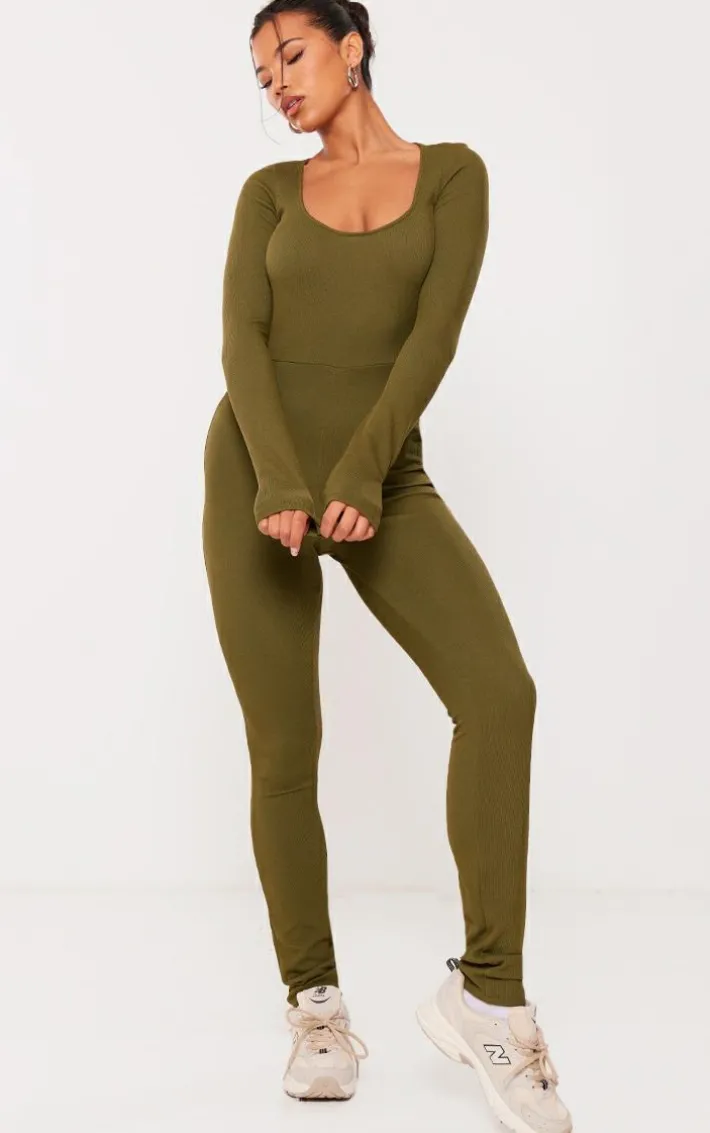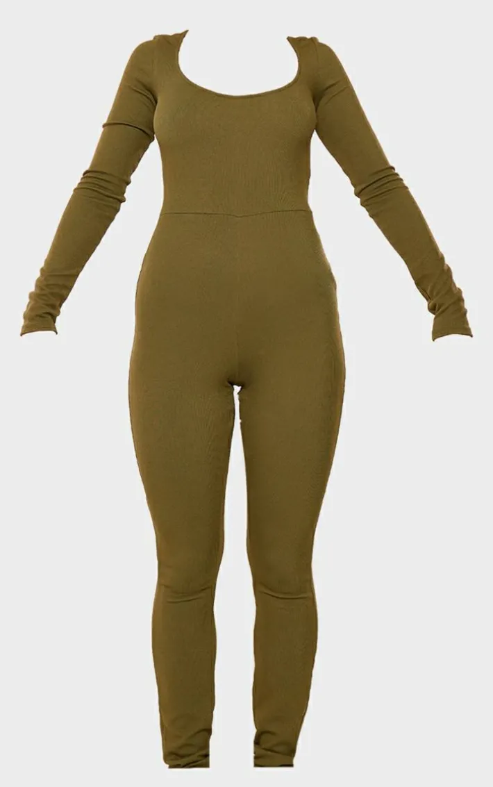 Take the stress out of everyday styling with this khaki rib scoop neck long sleeve flare leg jumpsuit. Brought to you in a khaki hue rib material with a scoop neckline, long sleeves and a flared leg design, how can you resist? Seriously comfy and with a figure-hugging fit, this khaki jumpsuit is sure to be a staple in your new season wardrobe. Just add sneakers and simple accessories for a fool-proof finish.