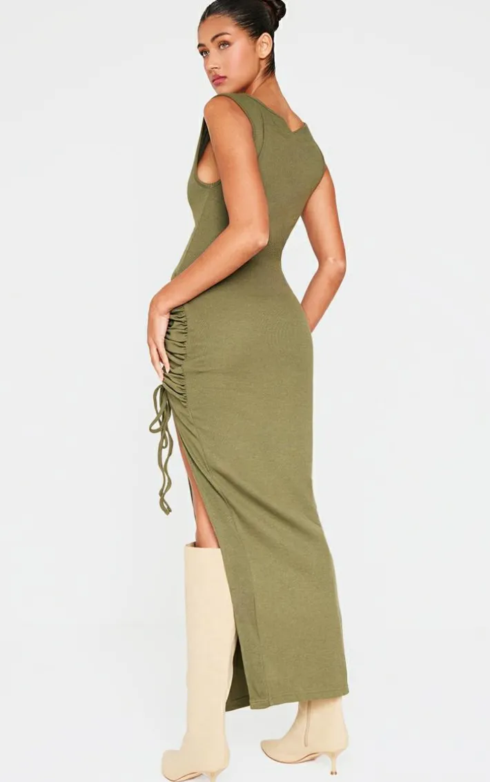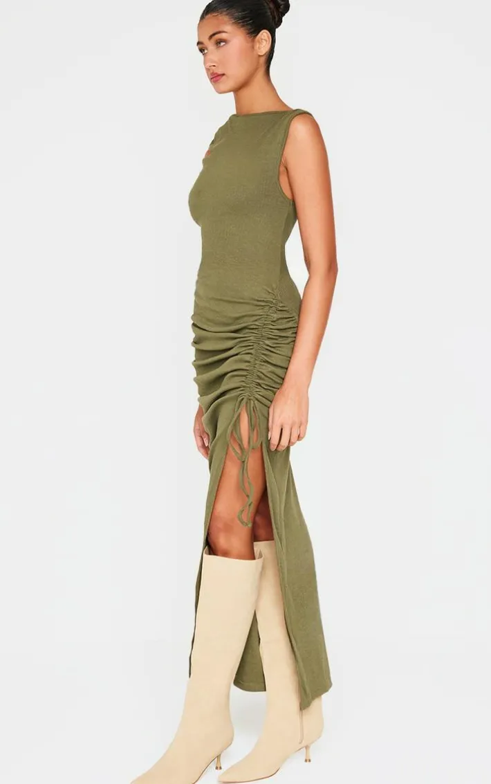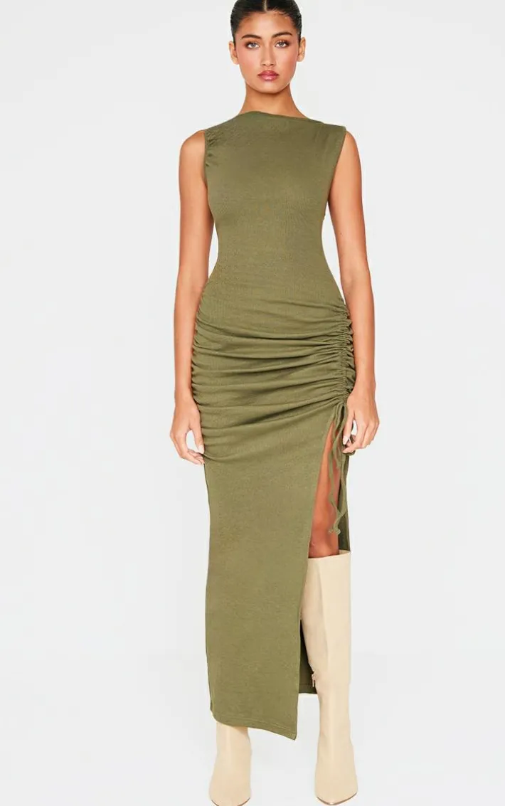 This khaki side split ruched sleeveless maxi dress is perfect for your new season wardrobe. Made from akhaki material with a sleeveless design, ruched detailing and a side split, how can you say no? Style this maxi dress with knee high heeled boots and simple gold accessories for a look that won’t go unnoticed.