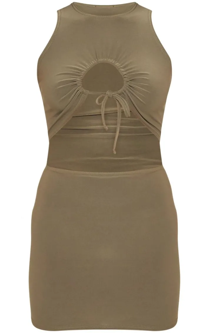 Take any look to new heights with this khaki slinky cowl neck cut out bodycon dress. Brought to you in khaki slinky material with a cowl neck design, what more could you want? Its cut out detail and bodycon fit is all you need to feel seriously chic. Team with your fave accessories and heels to finish off the look we are loving.